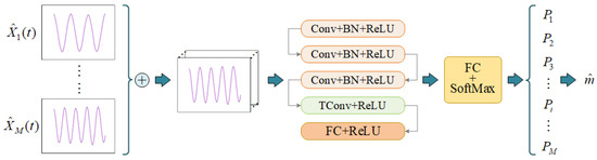 In addition, this network uses skip connections to fuse shallow features and deep features by channels, enhancing the network’s ability to construct the nonlinear mapping function . Meanwhile, multiple BN layers and activation layers are employed to increase the convergence speed of network training [37]. Taking the case where the maximum estimated number of component signals by the network as an example, Table 1 presents the parameters of the signal separation network.
