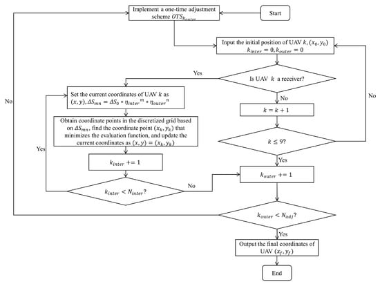 - For cooperative formation adjustment with variable emitters, a novel cyclic cooperative strategy, the Perceive-Explore-Judge-Execute () loop, was proposed. This framework enables dynamic role-switching among UAVs between signal transmission and reception. Its core is optimized by GA-IADES, which efficiently searches for the optimal sequence of role transitions, ensuring rapid convergence and high precision for the entire formation.