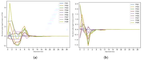 Variation of UAV polar angle under the optimal adjustment scheme. (a) GA algorithm. (b) GA-IADNS algorithm.