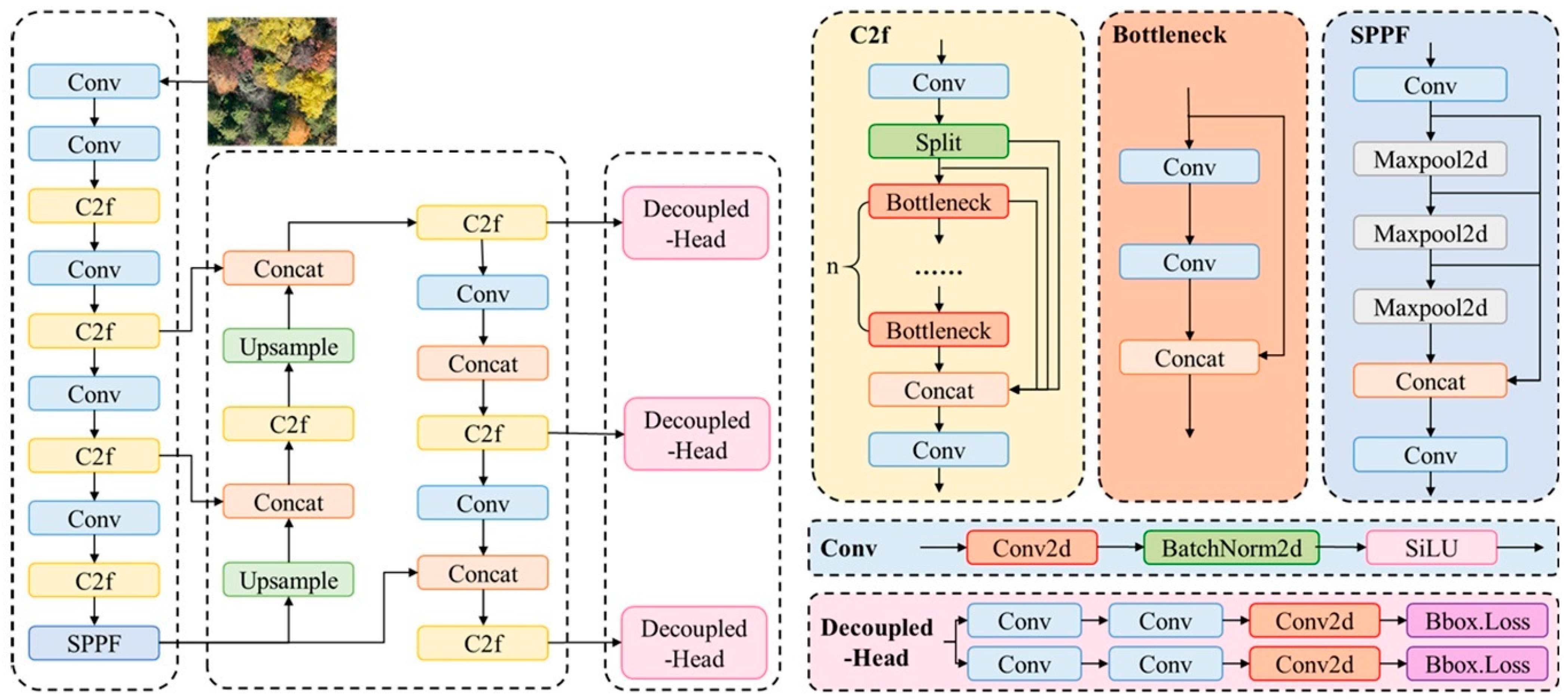 Figure 3), which separates the classification and bounding box regression tasks into independent branches. This allows for specialized optimization of each sub-task and improves the model’s ability to accurately detect objects across a wide range of scales. The efficiency of the YOLOv8n architecture makes it particularly well-suited for applications requiring rapid inference [