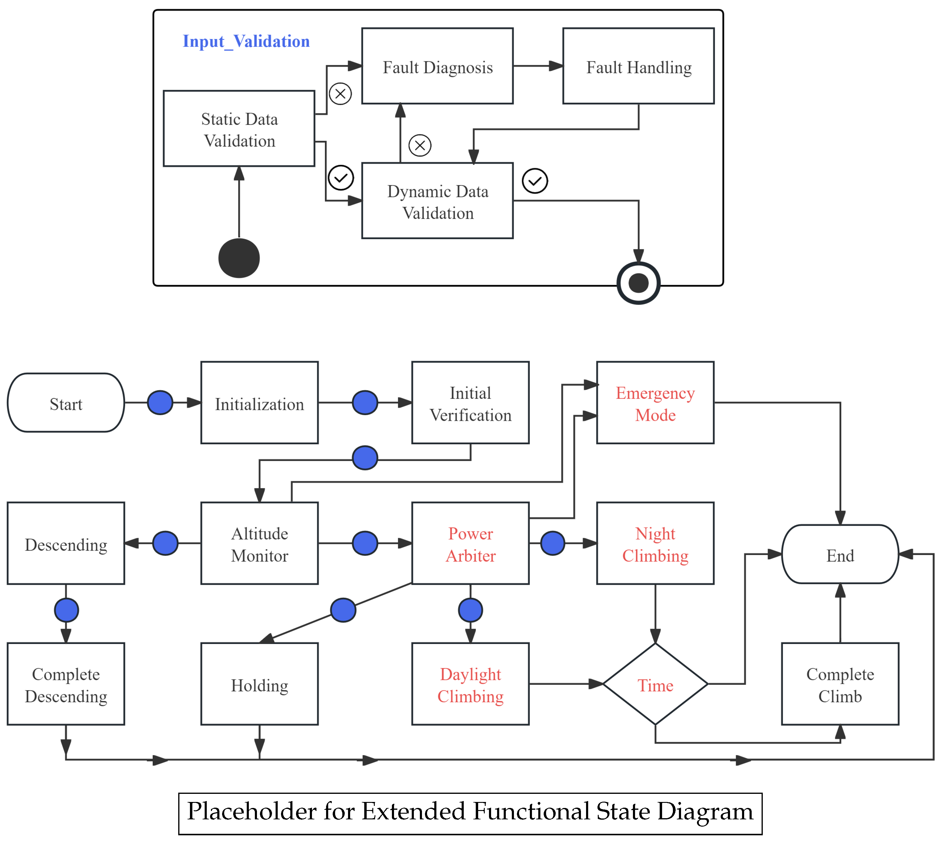 Classification and Structuring: The extracted raw principles were then classified into a structured hierarchy. We developed a five-category taxonomy corresponding to key aspects of the system’s design: (1) External Interfaces, (2) Functional Logic, (3) Functional Hierarchy, (4) States and Modes, and (5) Flight Control–Energy Coupling. Each principle was assigned to one or more categories.