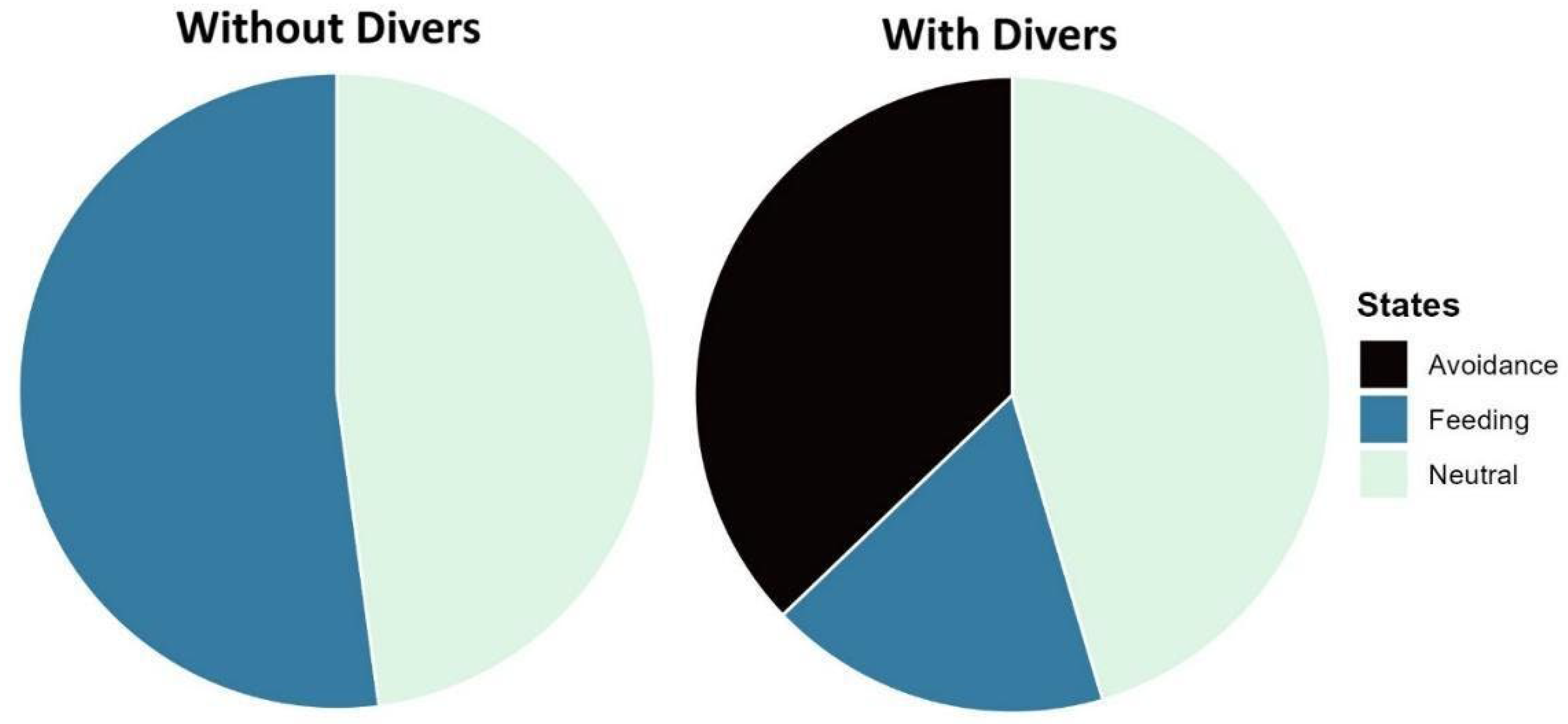 - Gómez-García, M.D.J.; Blázquez-Moreno, M.D.C.; Stewart, J.D.; Leos-Barajas, V.; Fonseca-Ponce, I.A.; Zavala-Jiménez, A.A.; Fuentes, K.; Ketchum, J.T. Quantifying the Effects of Diver Interactions on Manta Ray Behavior at Their Aggregation Sites. Front. Mar. Sci. 2021, 8, 639772. [Google Scholar] [CrossRef]