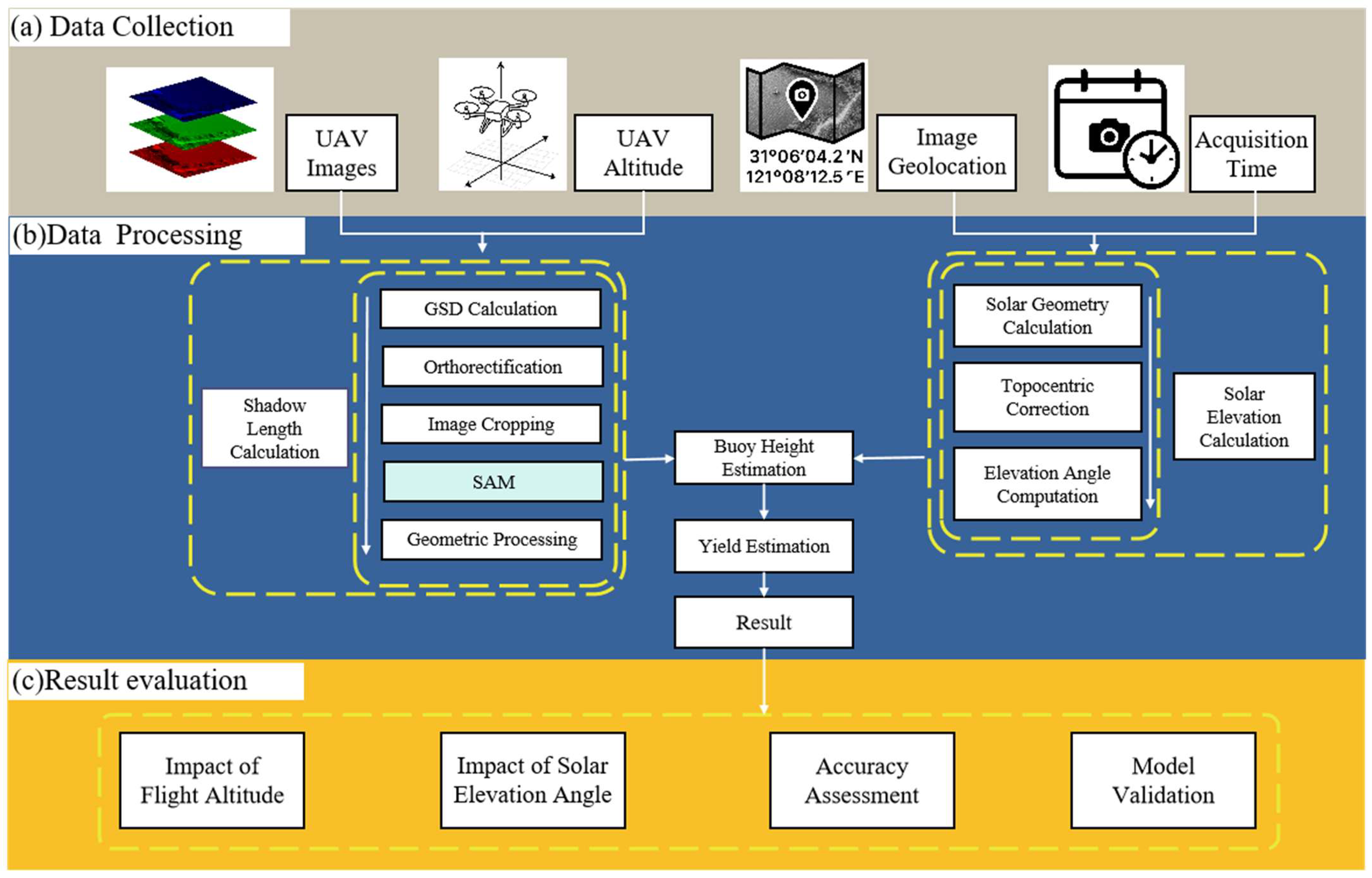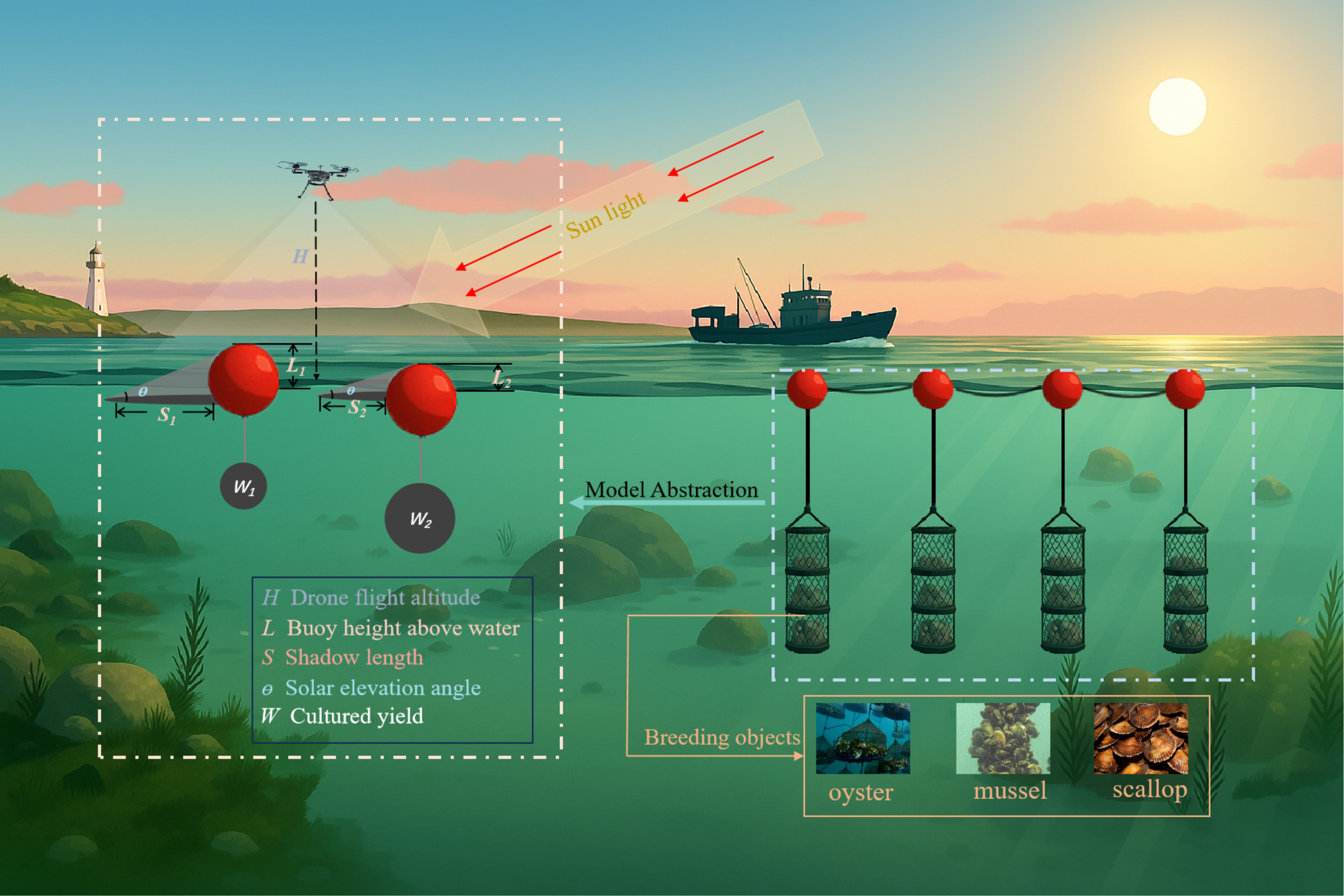 - Developed a physically interpretable Shadow Geometry Inversion for Aquaculture (SGIA) model that estimates yield in longline aquaculture through the geometric relationship between buoy shadows and solar altitude using UAV imagery.