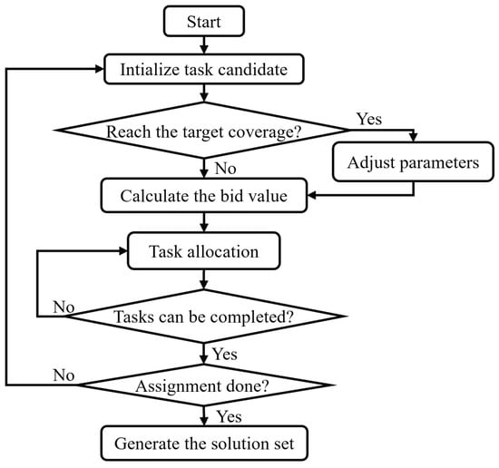 During task allocation, pheromone concentration is introduced as a negative influencing factor in the bidding function. The higher the pheromone concentration at a grid cell, the lower its priority for task allocation. This mechanism guides the system to prioritize the exploration of unvisited or less-visited areas, improving overall spatial coverage efficiency and reducing task overlap.