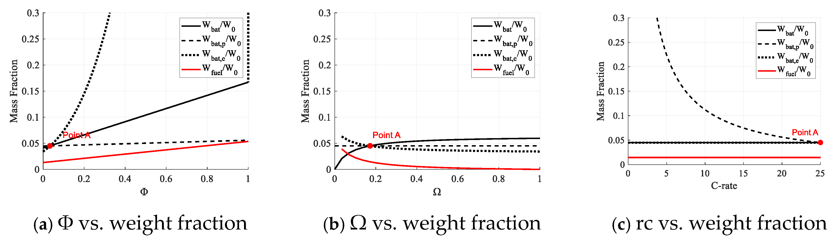 Figure 1, three fundamental matching parameters were defined to determine the component weight fraction: (1) power ratio (Φ); (2) energy ratio (Ω), representing the proportion of battery energy