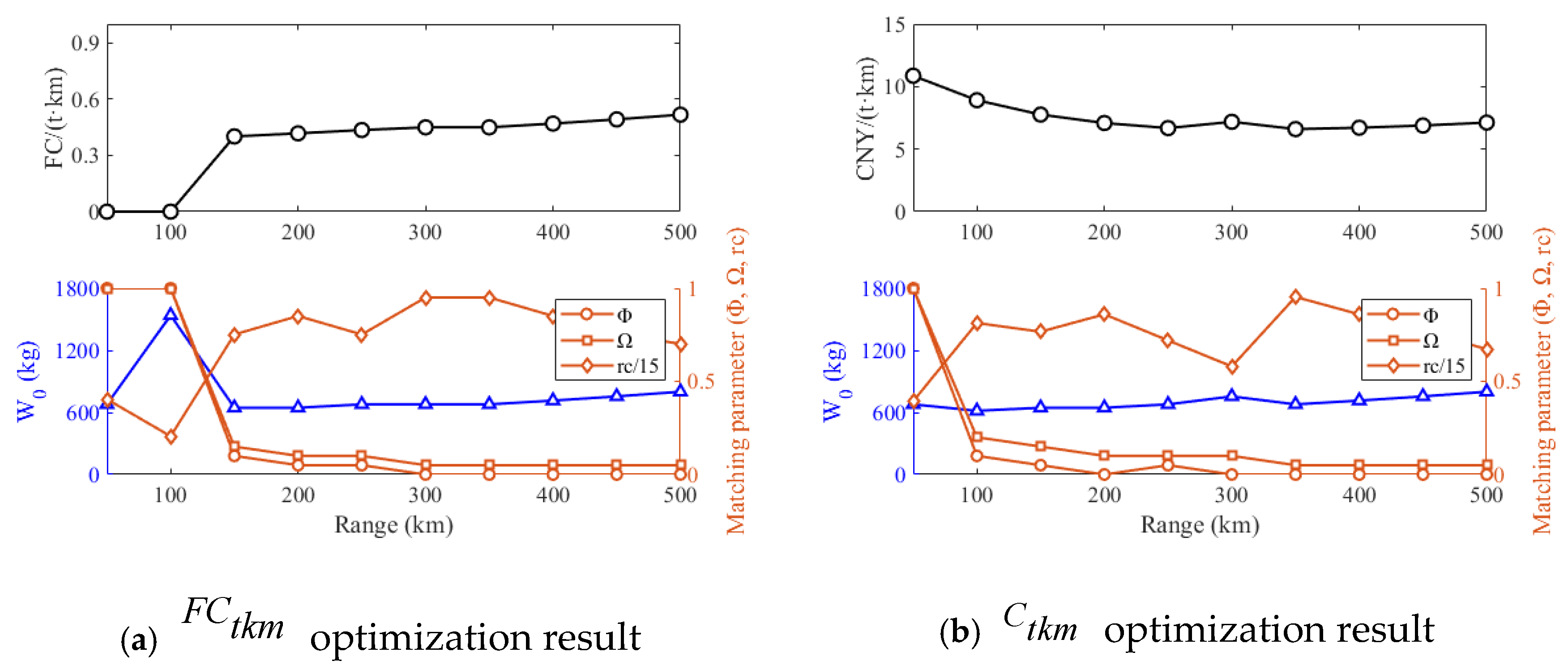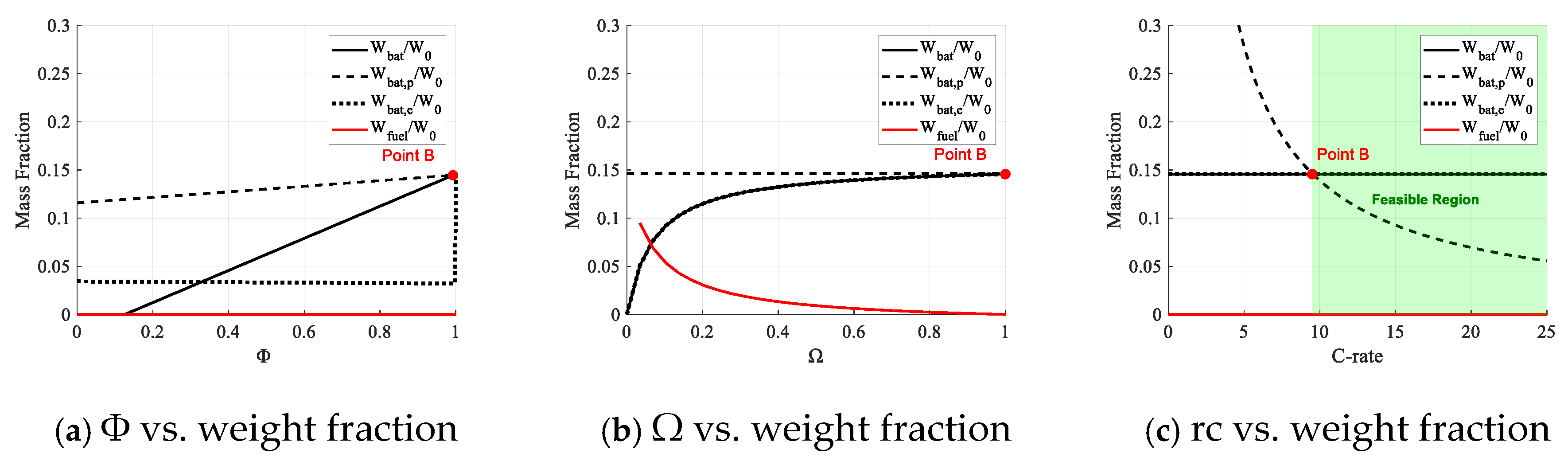 Once subsystem weight fractions are defined, the range can be calculated. This approach fundamentally applies to all powertrain configurations, since their architectural differences are fully characterized by linear mappings within the Φ-Ω-rc parameter space. Specifically, the FE configuration represents the singular case where Φ = Ω =1. The extracted matching parameters effectively decouple interdependencies among variables, allowing independent tuning of key design factors and improving optimization stability.