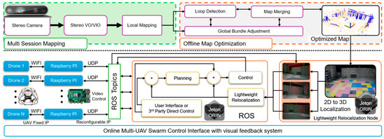multi-LiDAR–IMU–camera systems. Specifically, we first construct an efficient distributed state estimation model. It decomposes the multi-LiDAR–IMU–camera system into a series of single LiDAR–IMU–camera subsystems, reformulating the complex coupling problem as an efficient distributed state estimation problem. Then, we derive an accurate feedback function to constrain and optimize the UAV state using estimated subsystem states, thus enhancing overall estimation accuracy. Based on this model, we design an efficient