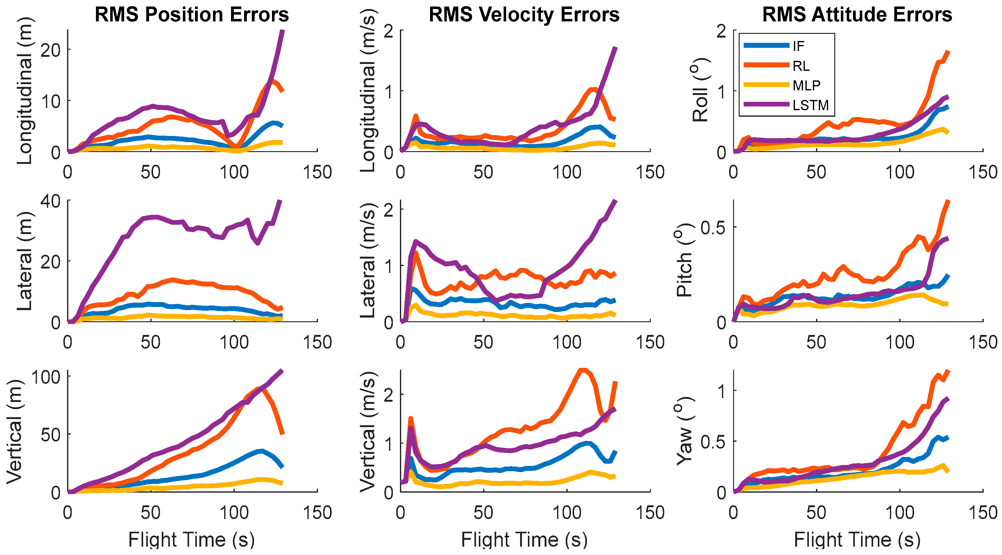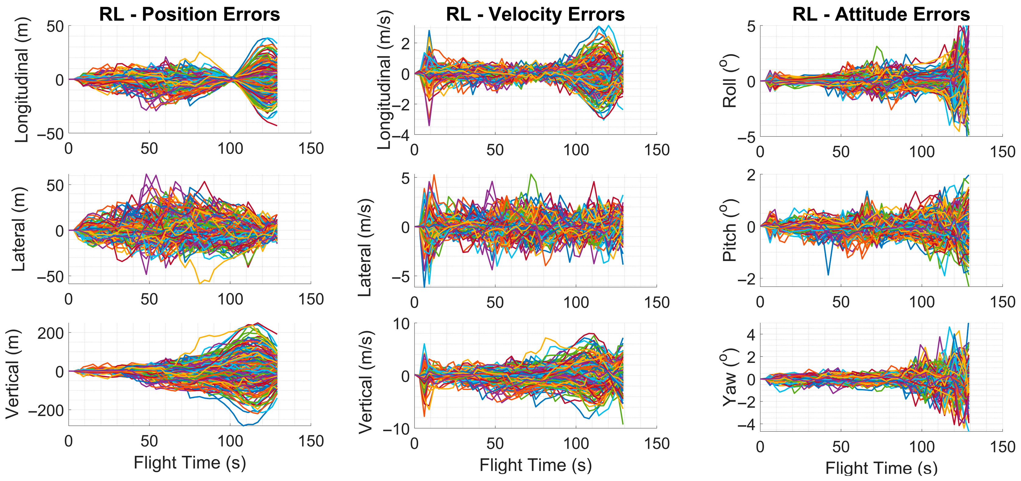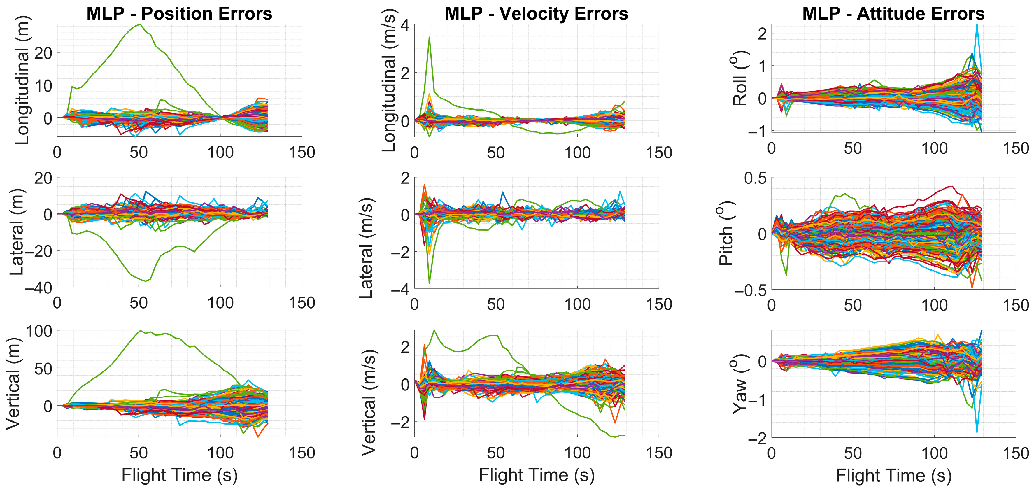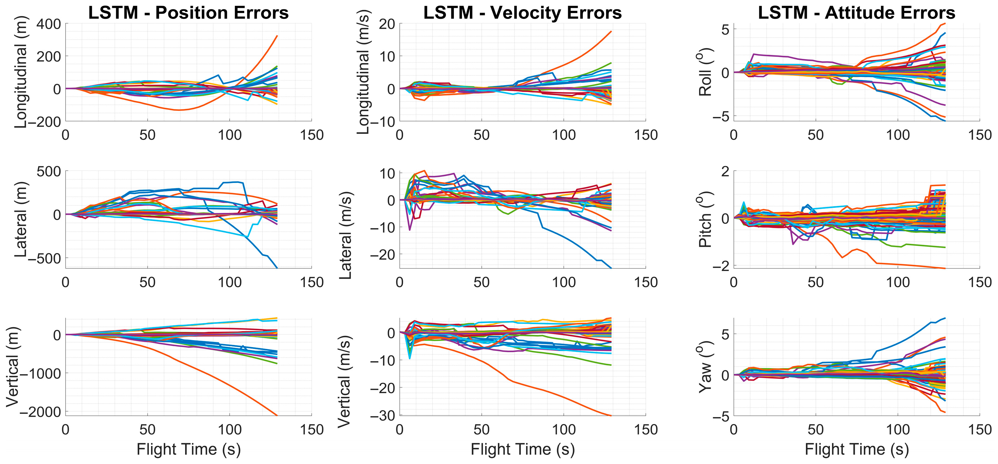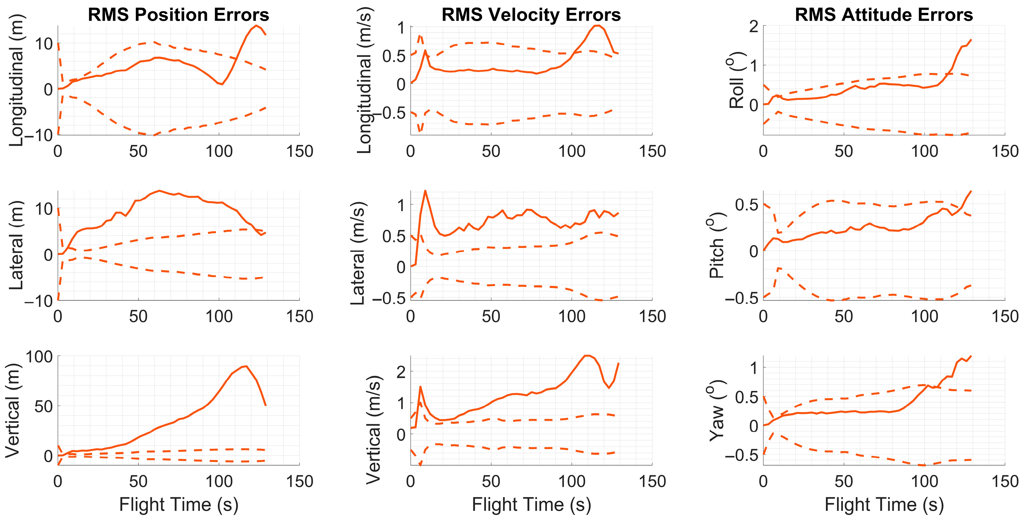 Figure 4 exhibited slight variations between runs within a predefined tolerance range. At the beginning of each run, the inertial sensor error parameters specific to that trial were randomly drawn from zero-mean normal distributions and kept constant throughout the simulation. The standard deviations of these distributions were determined based on the nominal error values provided in
