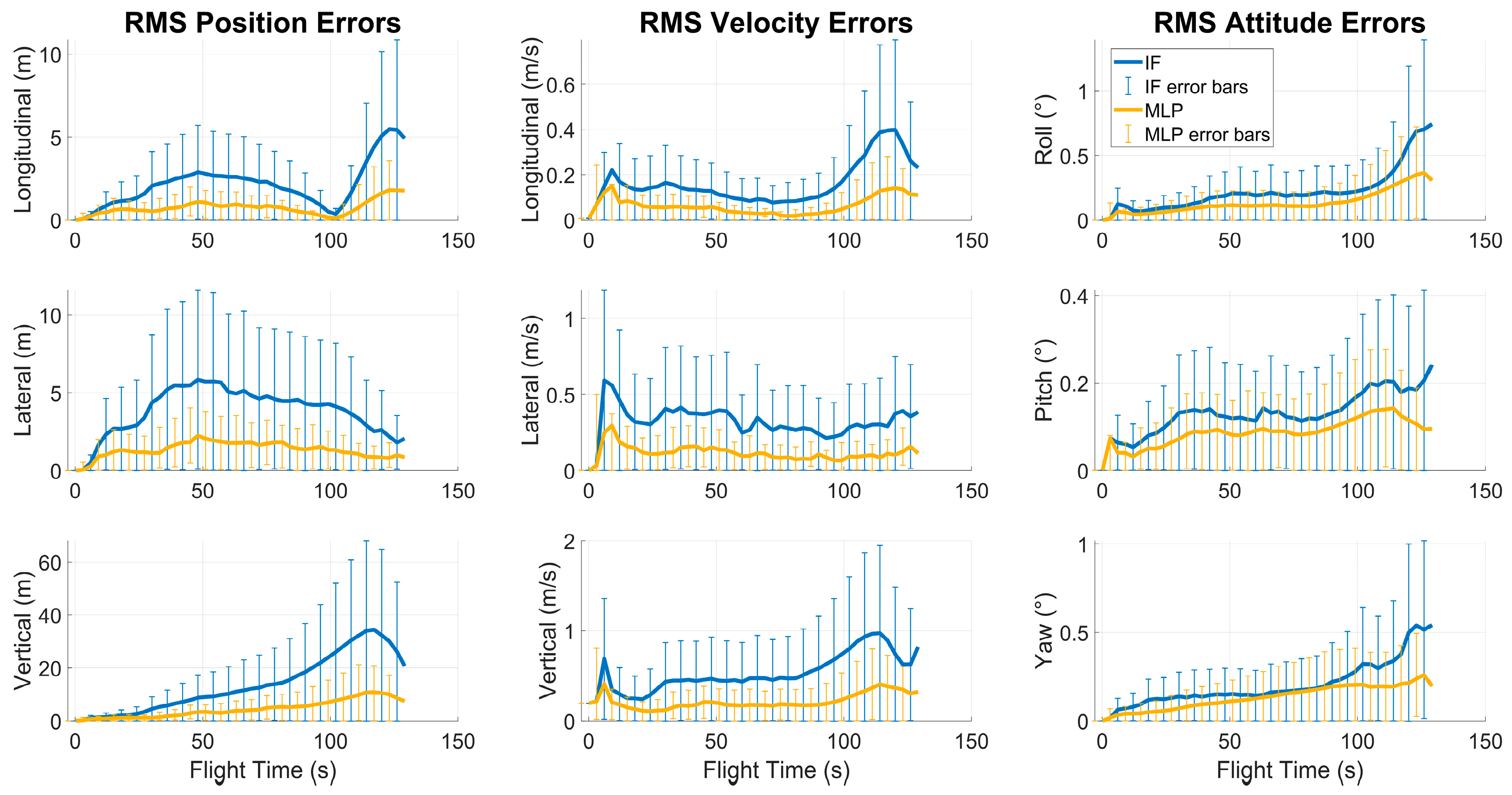 In the simulation, constant biases were identified as the primary error sources significantly affecting the analysis; therefore, only these components were included in the error-state vector. The effects of other error types were represented implicitly through bias instability terms.
