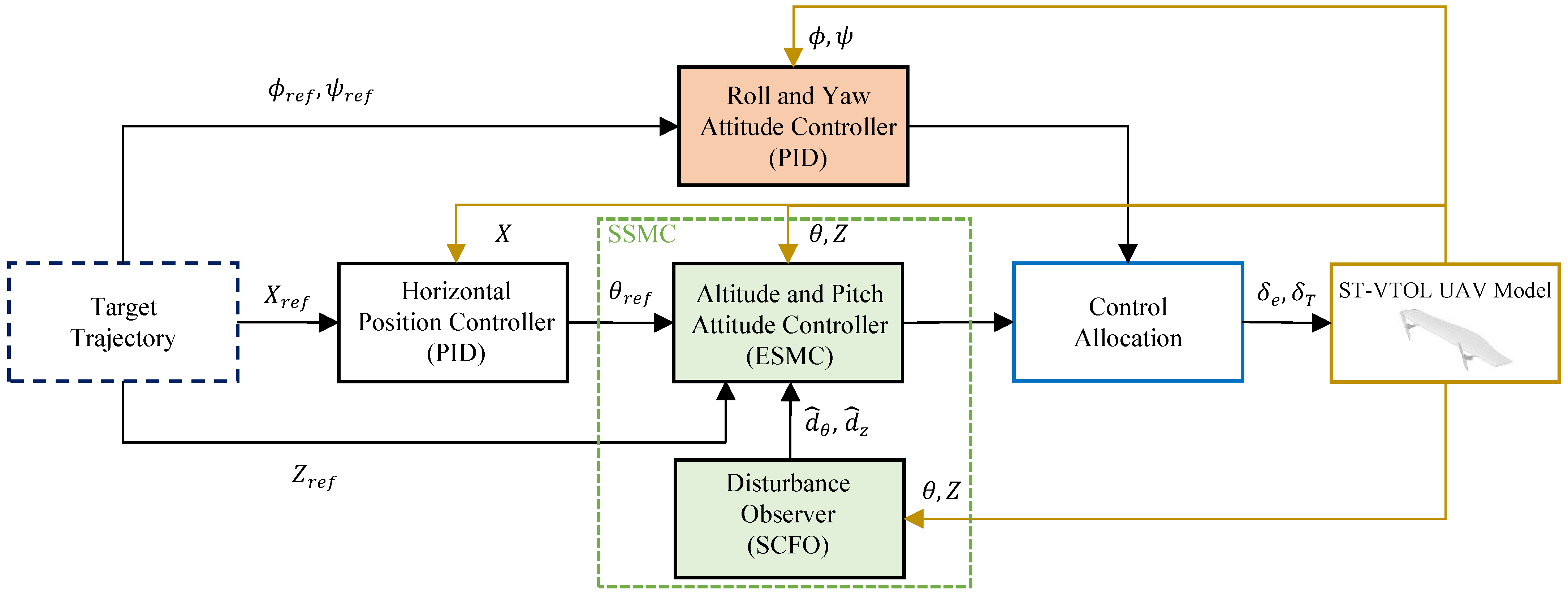In summary, while significant progress has been made in robust disturbance-aware control of UAVs, further research is needed to evaluate the performance of these approaches on novel platforms requiring high wind resistance, such as ST-VTOL UAVs. This study demonstrates the integration of SSMC on an ST-VTOL UAV. The main contributions are summarized as follows:
