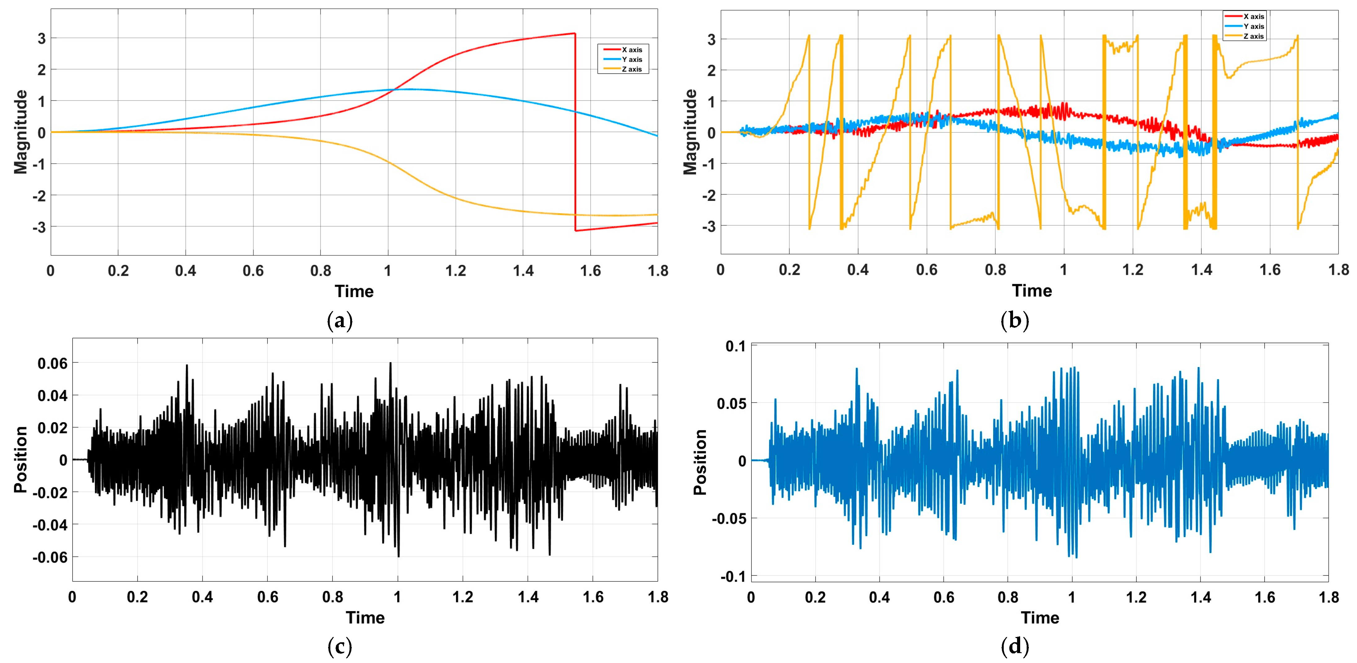 - Sun, H.; Li, J.; Wang, R.; Yang, K. Attitude Control of the Quadrotor UAV with Mismatched Disturbances Based on the Fractional-Order Sliding Mode and Backstepping Control Subject to Actuator Faults. Fractal Fract. 2023, 7, 227. [Google Scholar] [CrossRef]