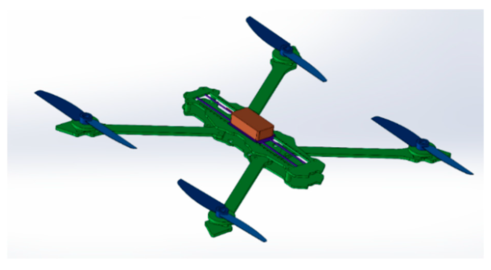 - Ahmad, F.; Bhandari, A.; Kumar, P.; Patil, P.P. Modeling and Mechanical Vibration Characteristics Analysis of a Quadcopter Propeller Using FEA. IOP Conf. Ser. Mater. Sci. Eng. 2019, 577, 012022. [Google Scholar] [CrossRef]