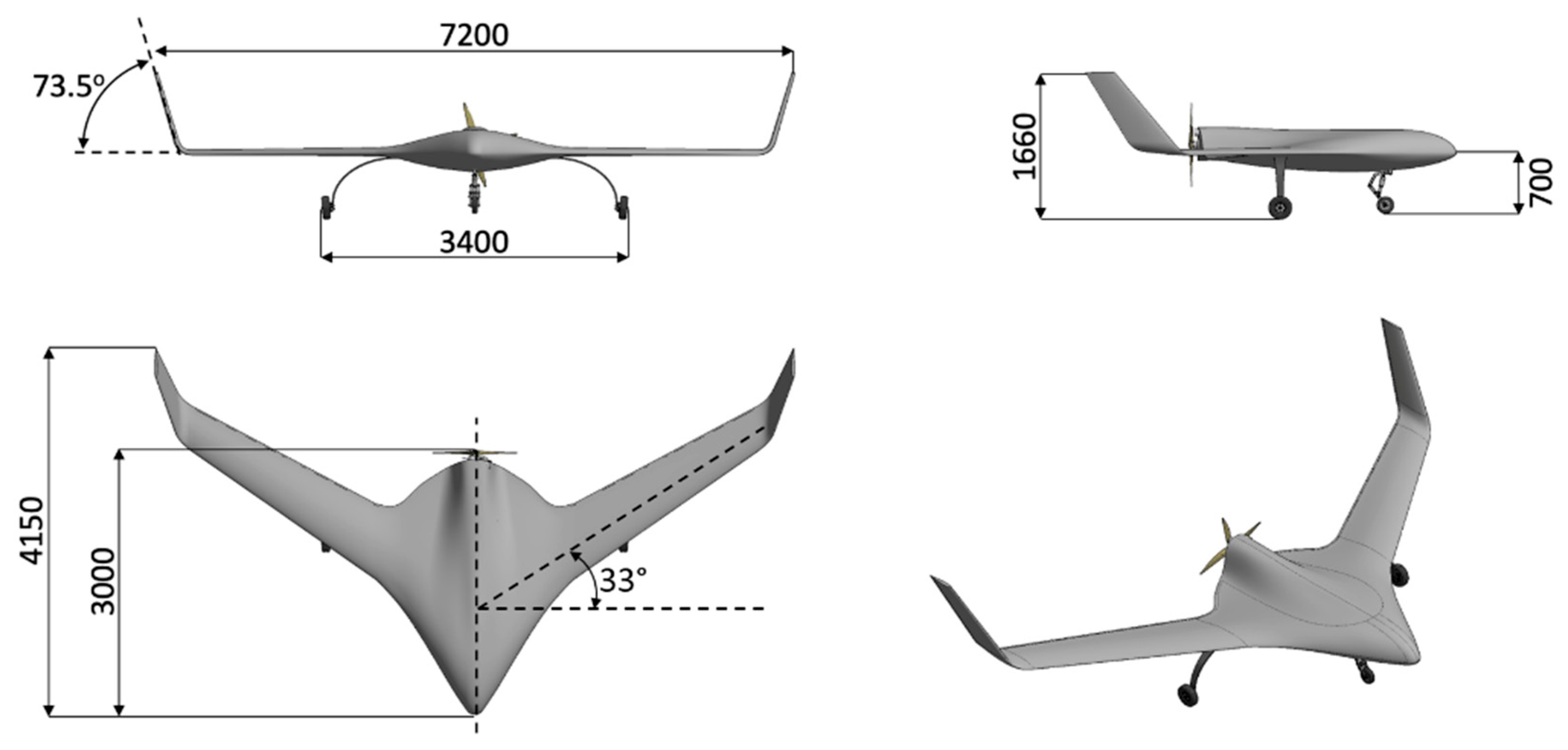 47], several morphing technologies, such as morphing control surfaces, morphing twist, and morphing winglets, are assessed, and their effect on the BWB UAV reference platform is defined. Moreover, [