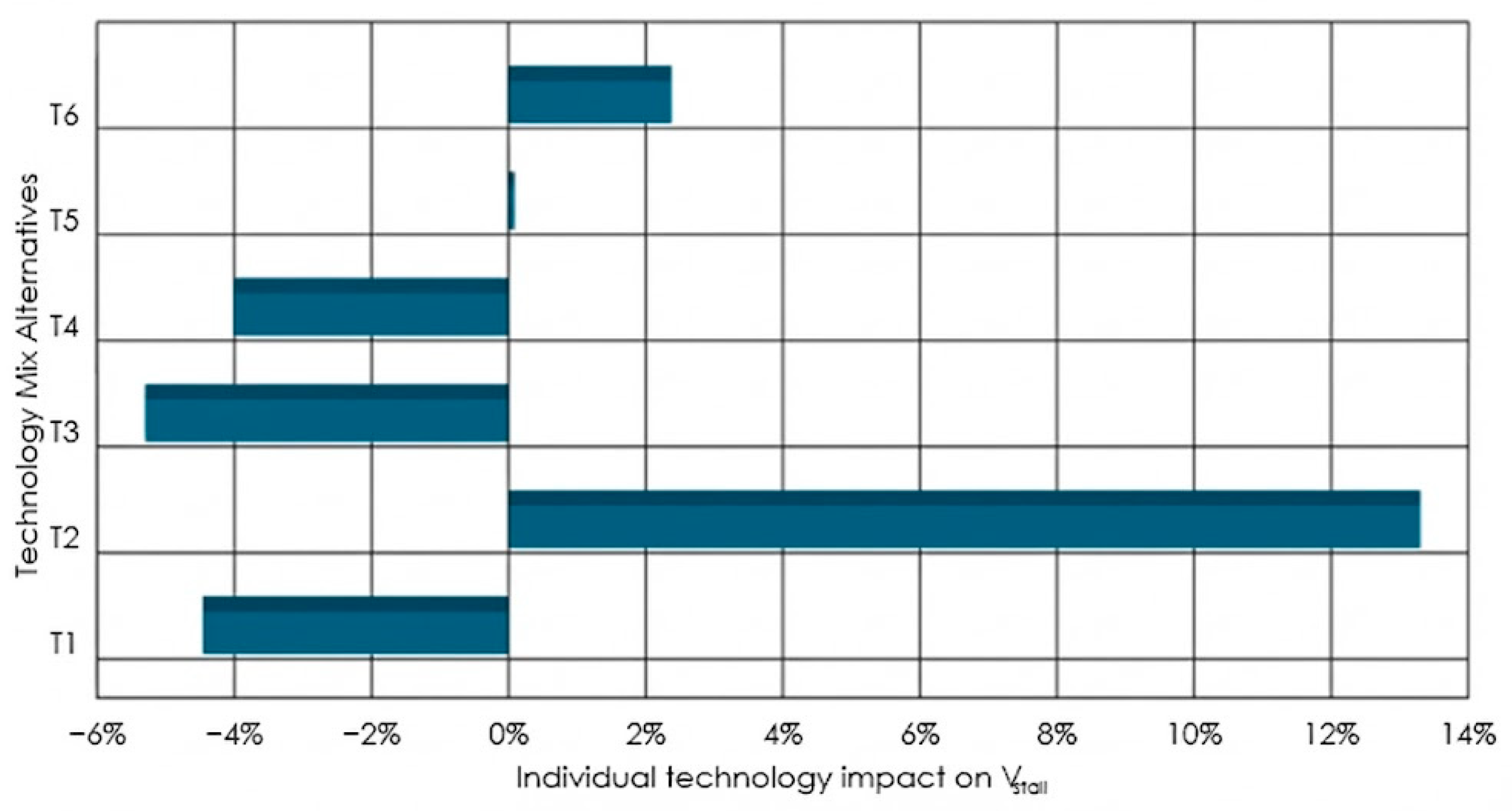 The synergetic integration of technologies yields non-linear gains. The combined application of slats, wing fences, morphing control surfaces, and hybrid propulsion (T1 + T3 + T5 + T6) achieves the best performance under all future-oriented weighting scenarios, indicating strong synergy in aerodynamic performance and energy efficiency.
