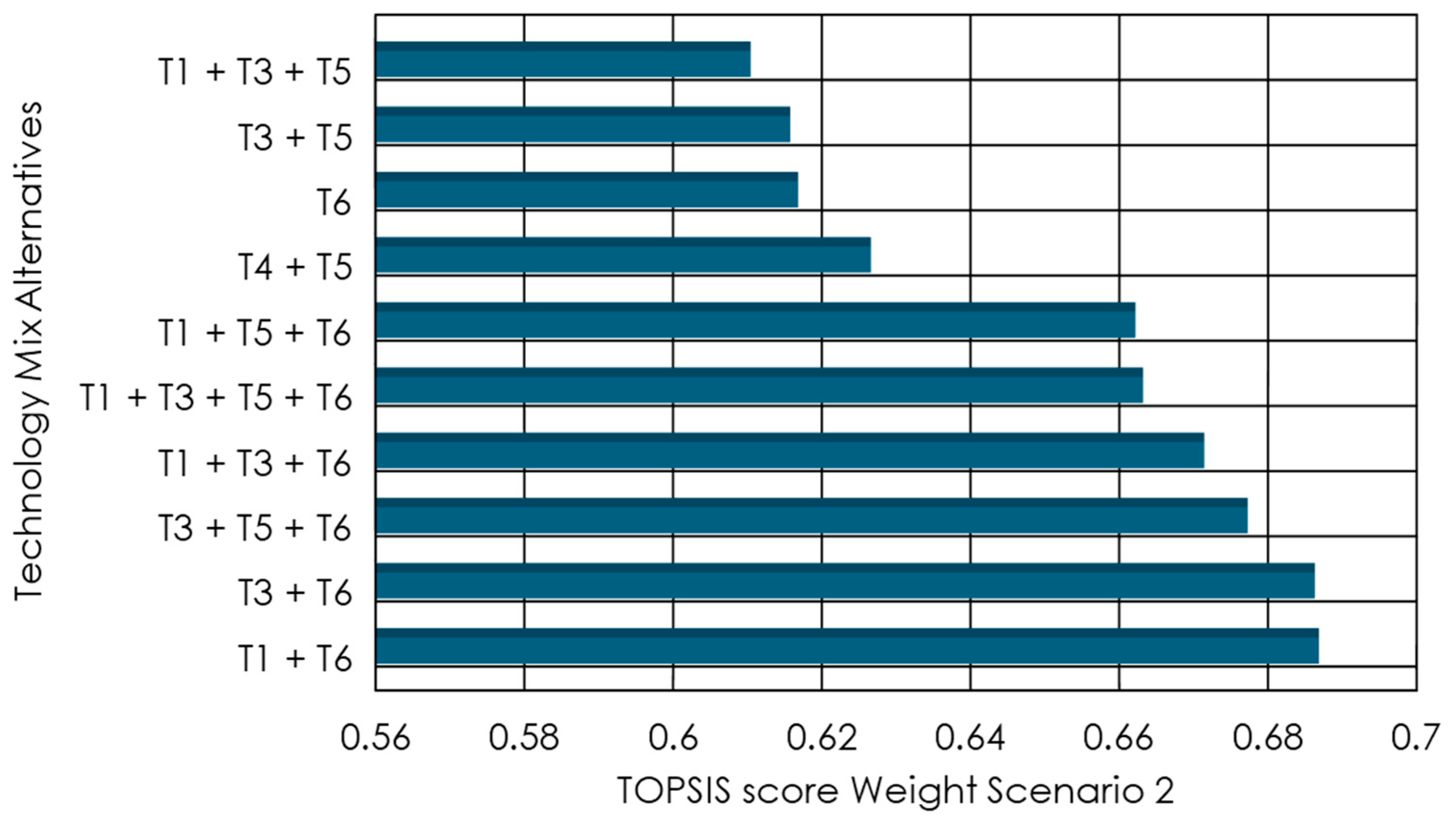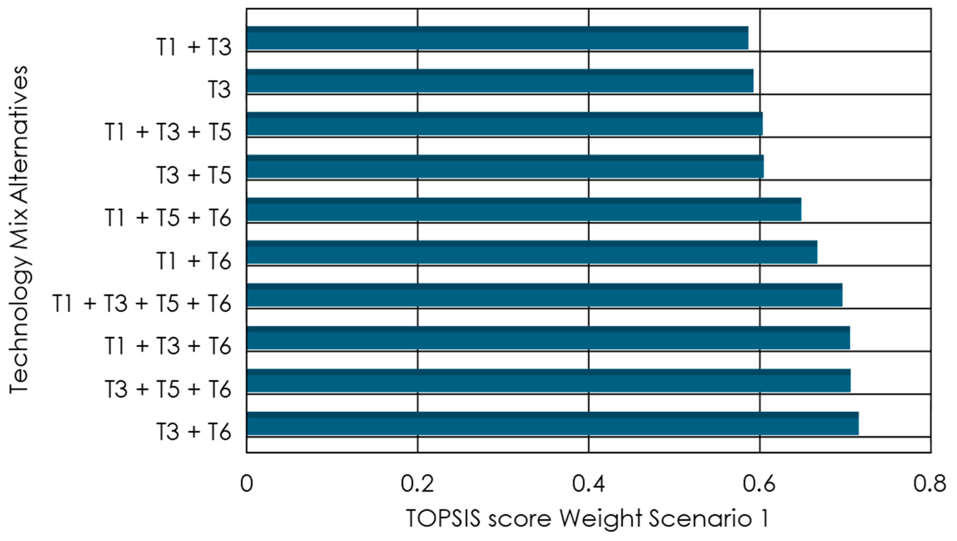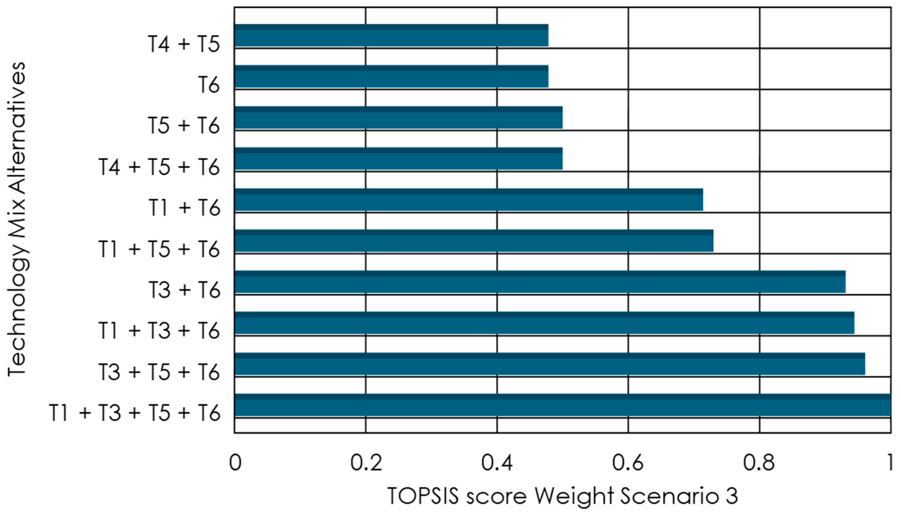 The TIES methodology, coupled with deterministic TOPSIS analysis, proved effective for ranking complex combinations of technology alternatives, without excessive computational burden.