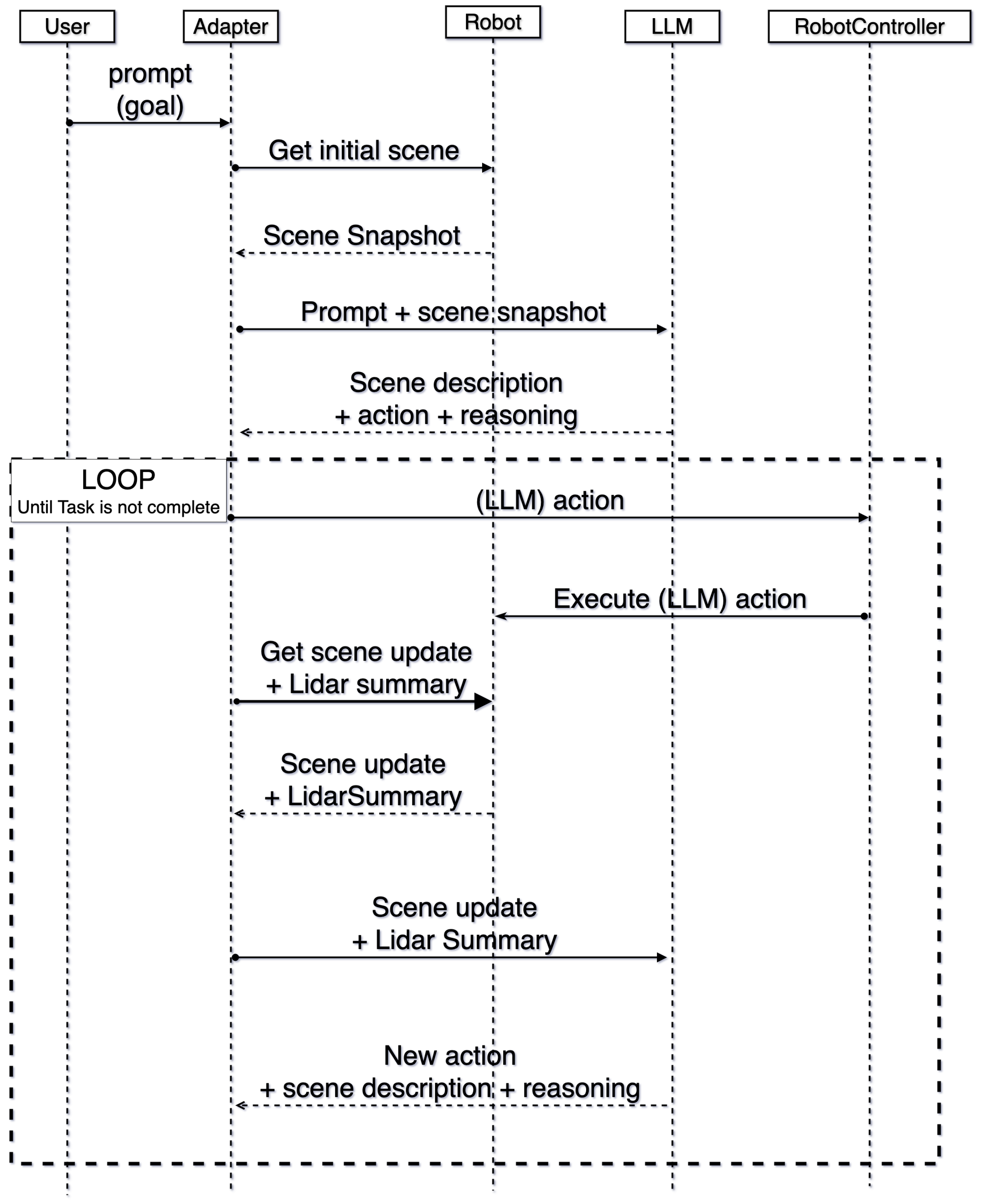 To assess the impact of multimodal inputs on the reasoning and planning abilities of LLMs in UGV contexts, we benchmarked Gemini 2.0 Flash (Google DeepMind) on ten semantically and spatially diverse navigation tasks within the simulated factory environment. As anticipated, each task was executed twenty times, using five different starting positions, in a closed-loop control framework, where the LLM received visual and LiDAR context at each step to iteratively refine its plan.