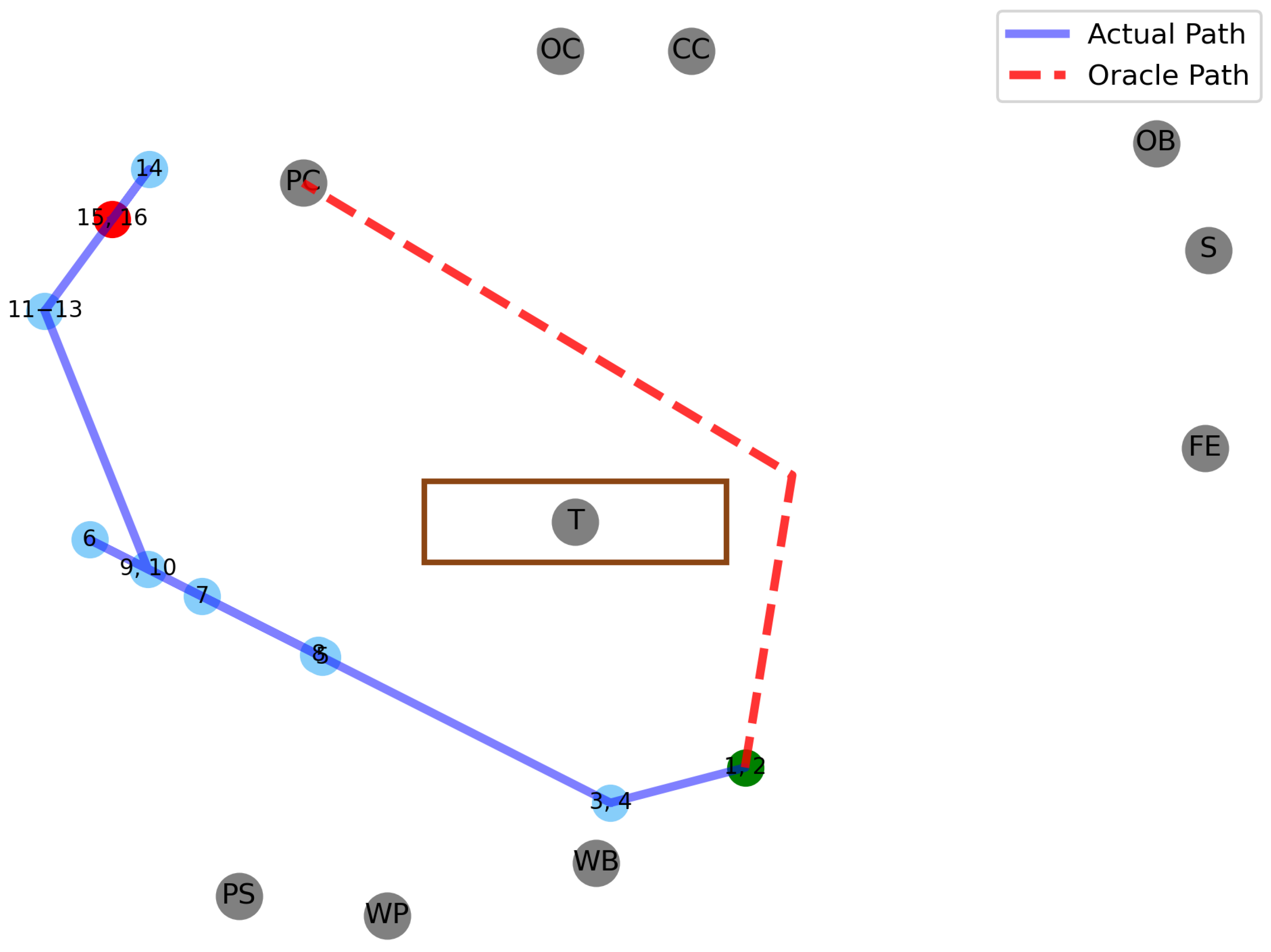 Figure 6 show representative trajectories for Tasks 1 and 2 compared with their respective Oracle paths, while