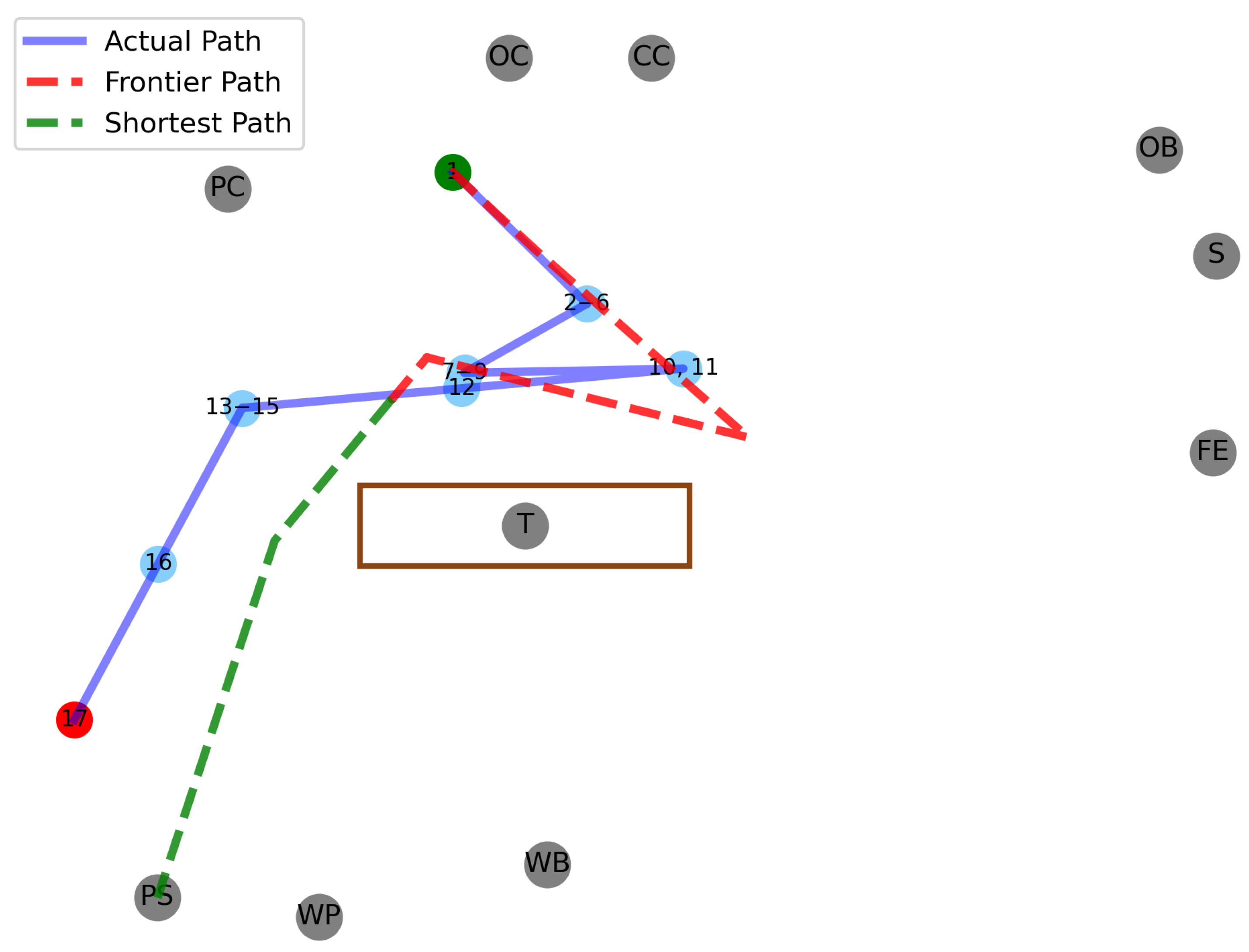 Figure 8 illustrate two examples on the same tasks of Frontier plus Shortest Path.