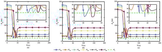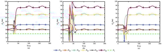 Distances between USVs. (a): method “I”; (b): method “II”; (c): method “III”.