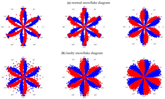 Results calculated using SDP. (a) Normal snowflake diagram; (b) faulty snowflake diagram.