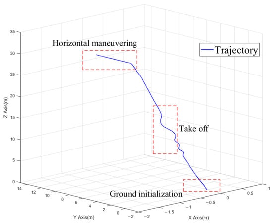 The experiment was conducted in an open and flat area, with three independent datasets collected to verify the proposed method. The average duration of the experiment was 60 s. The drone was observed to perform a series of tests, beginning with the initialization, takeoff, and multiple horizontal maneuvering flight tests, all of which commenced from the origin.