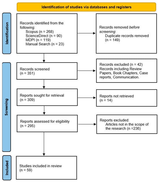A comprehensive search was conducted across multiple databases to address the research objectives. The strategy comprised two approaches: systematic querying in Scopus, ScienceDirect, and MDPI and a manual search across review papers to extract relevant documents that might have been missed in the automated search.