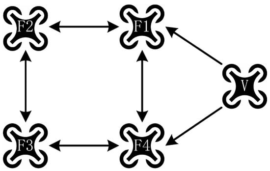 In the UAV formation control problem studied in this paper, each UAV is regarded as an agent. Algebraic graph theory serves as an important analytical tool for describing the connection relationships among agents. The communication relationship between UAVs is denoted as a graph , where is the set of N UAVs, is the set of edge, denotes the adjacency matrix. If there is information flowing from UAV j to UAV i, , otherwise, . Specially, the diagonal elements of the adjacency matrix are all 0, that is, . The degree matrix is defined as , where is the in-degree of node i. The Laplace matrix is denoted as .