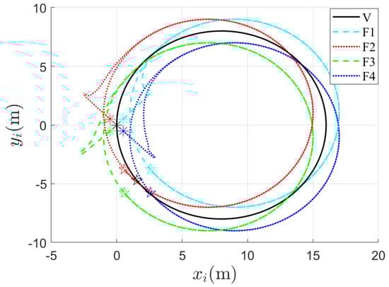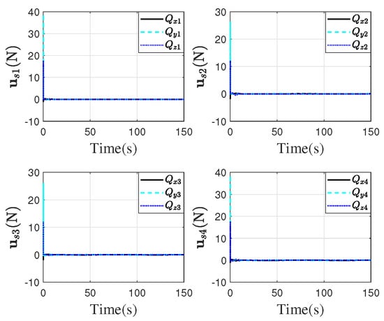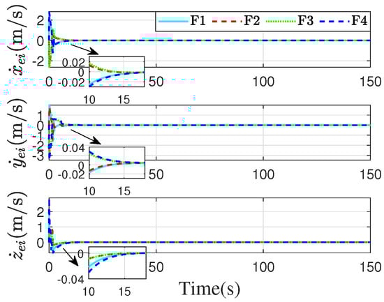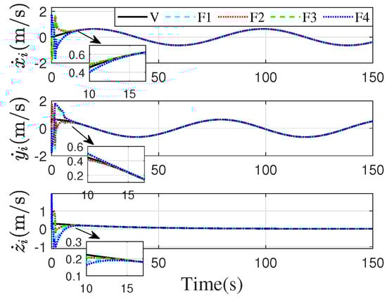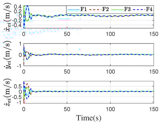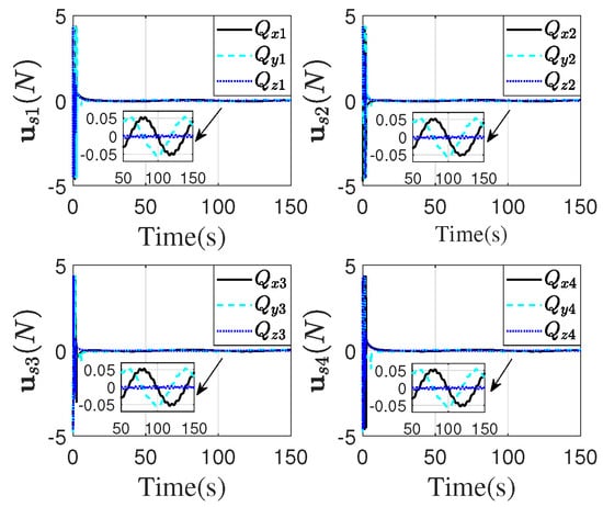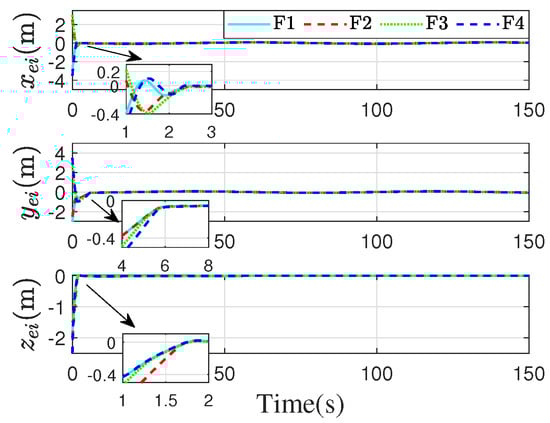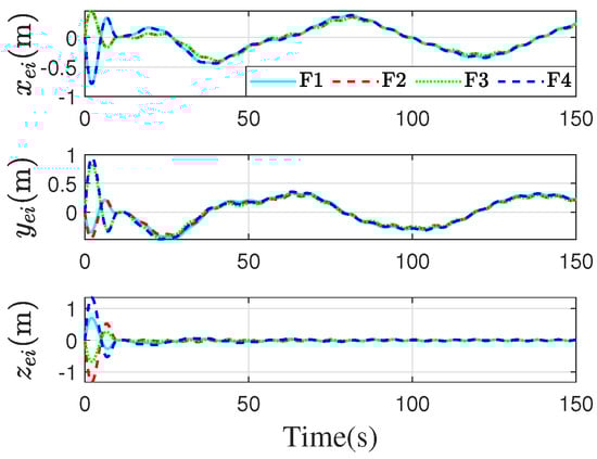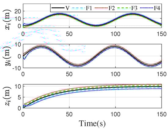 Similarly, by applying Theorem 1 and controller Equation (20), the sub control inputs for formation controller in the y-axis and x-axis directions can also be obtained, respectively.