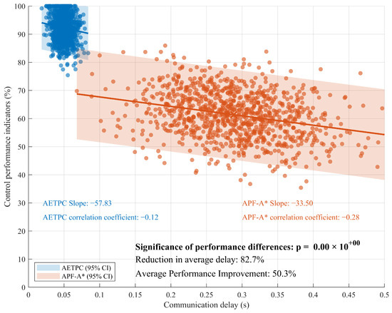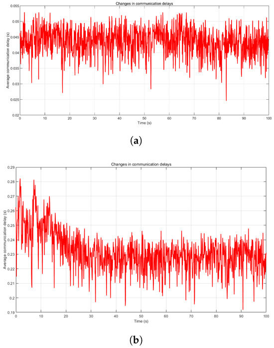 Traditional multi-UAV formation control methodologies primarily encompass behavior-based approaches, virtual structure methods, and leader–follower strategies [6]. While these methods demonstrate satisfactory performance in open environments, they often struggle to simultaneously maintain both obstacle avoidance capability and formation integrity in confined spaces [7]. This challenge becomes particularly pronounced in tunnel environments with multiple obstacles, where UAV formations must not only coordinate collision avoidance maneuvers but also dynamically adapt their configuration according to the tunnel’s complex geometry while preserving overall formation stability [8]. Furthermore, the constrained nature of such environments exacerbates communication limitations, as wireless signals become susceptible to occlusion, resulting in frequent communication delays and packet loss—factors that significantly compound the difficulty of formation control [9,10].
