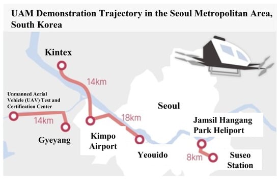 Urban traffic congestion considerably diminishes the quality of urban life and results in substantial economic costs. UAM has been proposed as a novel alternative capable of overcoming the constraints of existing ground-based transportation infrastructures, thereby facilitating more efficient urban mobility. By utilizing aerial routes, UAM effectively bypasses congested road networks, substantially reducing travel time, a benefit especially pronounced in densely populated urban regions. For instance, implementing a UAM system connecting Seoul Station and Incheon International Airport could substantially alleviate traffic congestion and result in considerable time savings [].