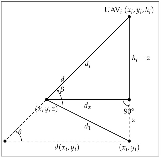 where a and b are constants depending on the environment (suburban, urban, or dense urban) and is the elevation angle given by [26]. Based on Figure 2, the following parameters are defined: