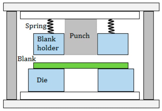 The material properties used in the analysis, such as Young’s modulus, Poisson’s ratio, yield stress, flow stress, and plastic strain relation, were obtained from a tensile test by using a universal tensile and compression testing machine. The material properties of the blank are listed in