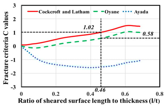 The blank thickness of 1.6 mm and the punch diameter of 30 mm is also considered to clear the effect of punch diameter on the sheared surface length. The values of the critical ductile fracture criteria (