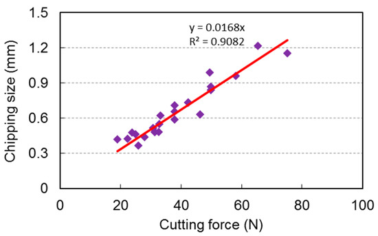 - It was observed that higher cutting force resulted in a larger chipping size, and this relationship was close to linear.