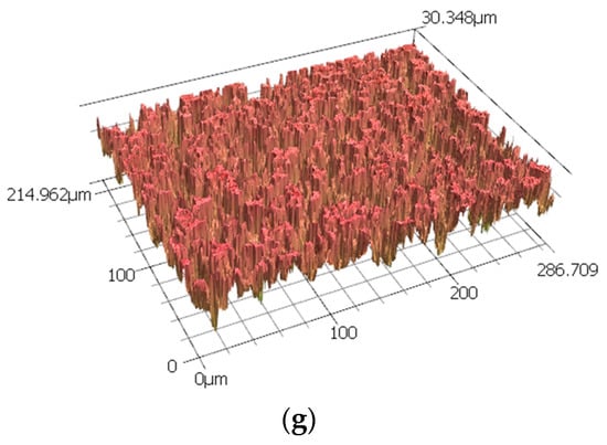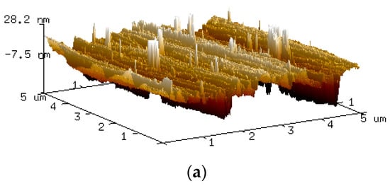 Microstructural changes during corrosion were investigated with a Hitachi S3400 SEM, and surface roughness during corrosion in micron scale was measured by non-contact three-dimensional imaging using a Keyence VK-X250 3D LSCM. This 3D Laser-Scanning Confocal Microscope (3D LSCM) instrument is equipped with non-contact profilometry and multilayer laser systems, offering 3D imaging with superior colour saturation and various line scan profile measurements []. It also provides a larger scan area up to micro-scale resolution, and thus, better overall mean roughness average (Ra) and root mean square roughness (Rq) values. Atomic Force Microscope (AFM) analysis was carried out with a Bruker Dimension ICON SPM, which is equipped with ScanAsyst-Air fitted and a silicon-coated tip in the PeakForce and TappingMode modes. Surface roughness as a function of corrosion time in an area of 5μm × 5μm was scanned for, at a scan rate of 0.349 Hz, to optimise resolution and accuracy. The AFM provides high-precision three-dimensional topographical imaging [,,] suitable for surface morphology analysis at nano-scale reconstruction [].