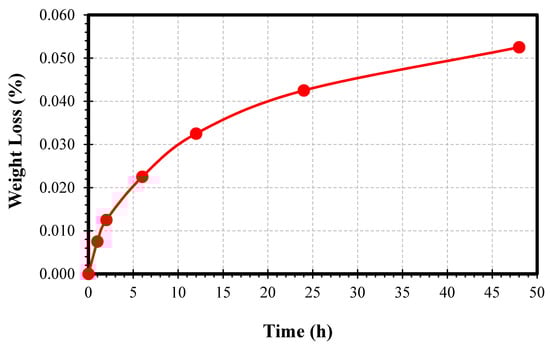 The graph of weight loss in percentage as a function of time in hours.