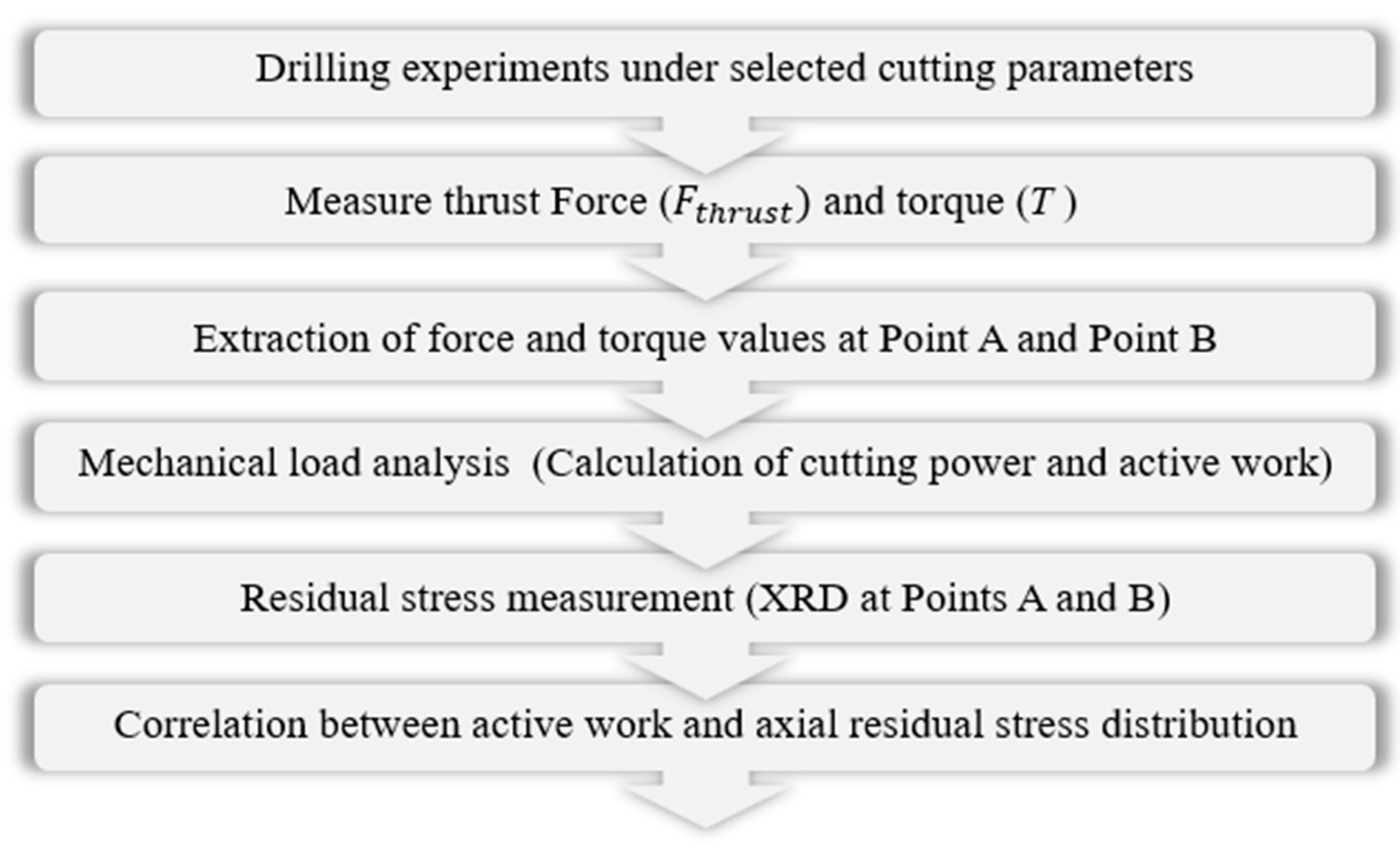 - The observed behavior aligns with previously reported findings on machining of AA7075. The similarity between drilling and turning indicates that residual stress generation in AA7075-T6 is driven by a unified, energy-controlled thermo-mechanical mechanism. Accordingly, active work serves as a robust and generalizable predictor for understanding and optimizing residual stress development across multi-stage machining operations.