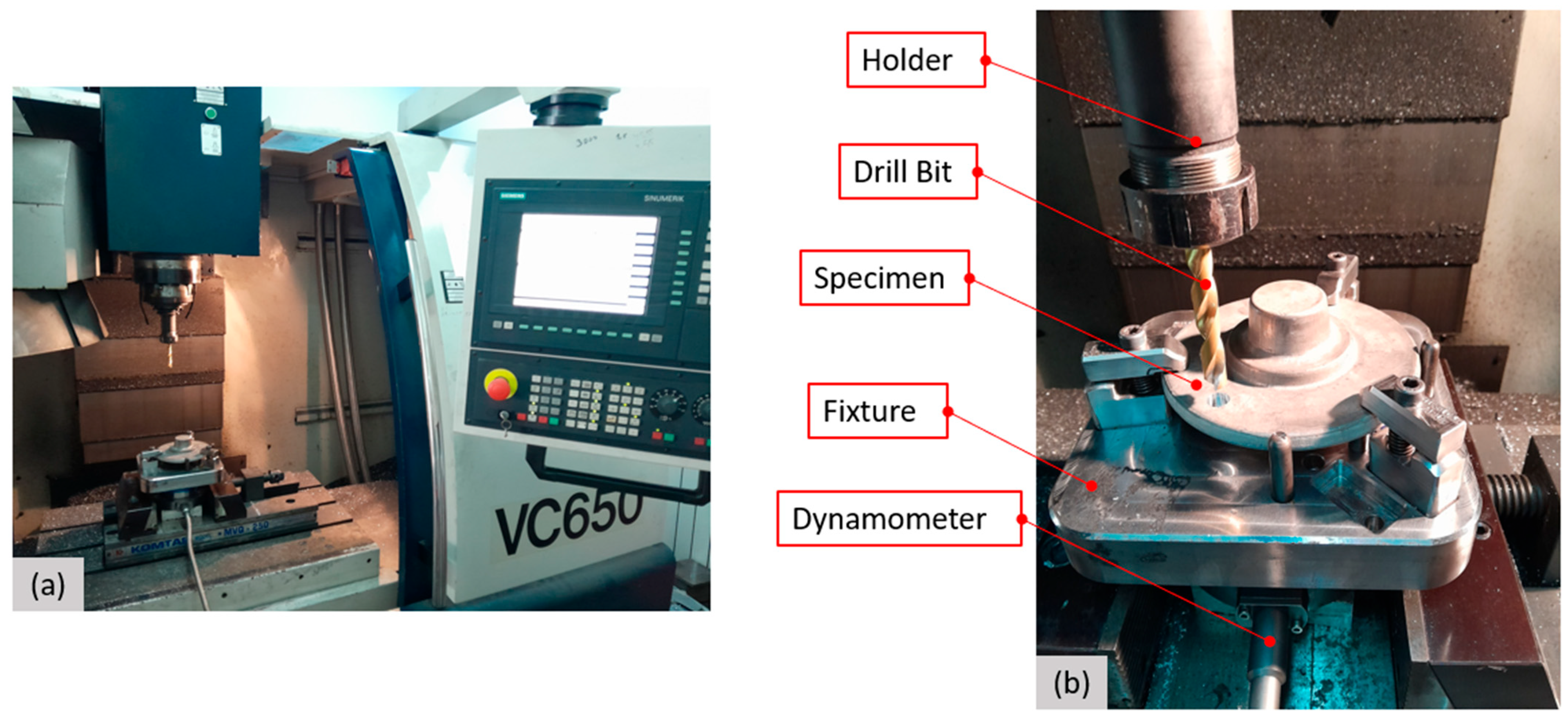 - Choe, J.-H.; Ha, J.H.; Kim, J.; Kim, D.M. Surface characteristics and residual stress variation in semi-deep hole machining of Ti6Al4V ELI with low-frequency vibration-assisted drilling. J. Manuf. Mater. Process. 2023, 7, 209. [Google Scholar] [CrossRef]