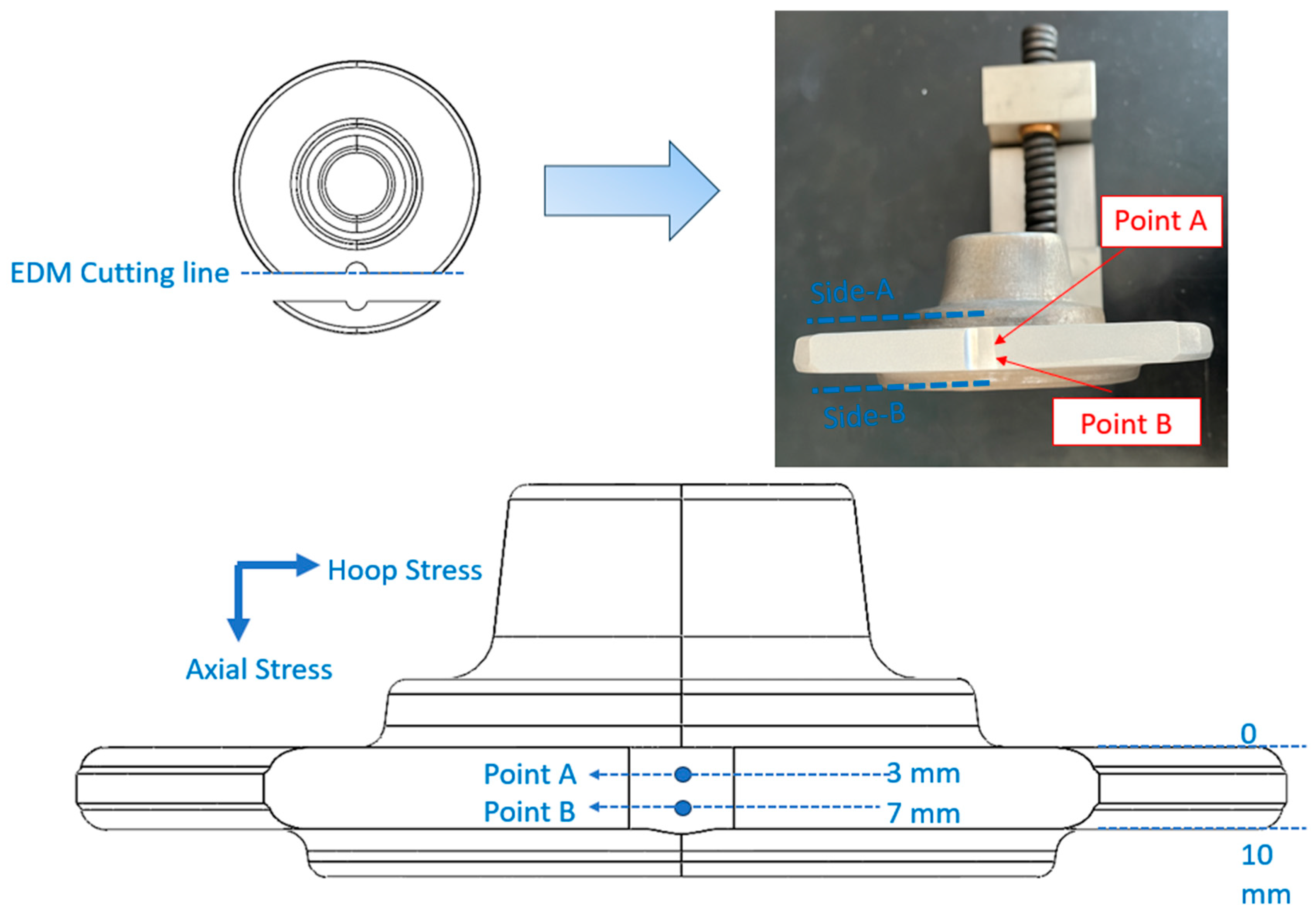 - Residual stresses exhibited clear directional and positional asymmetry. Exit-side (Point B) stresses were more compressive due to breakthrough effects, reflecting unstable deformation, chip thickening, and restricted chip flow during drill breakthrough.