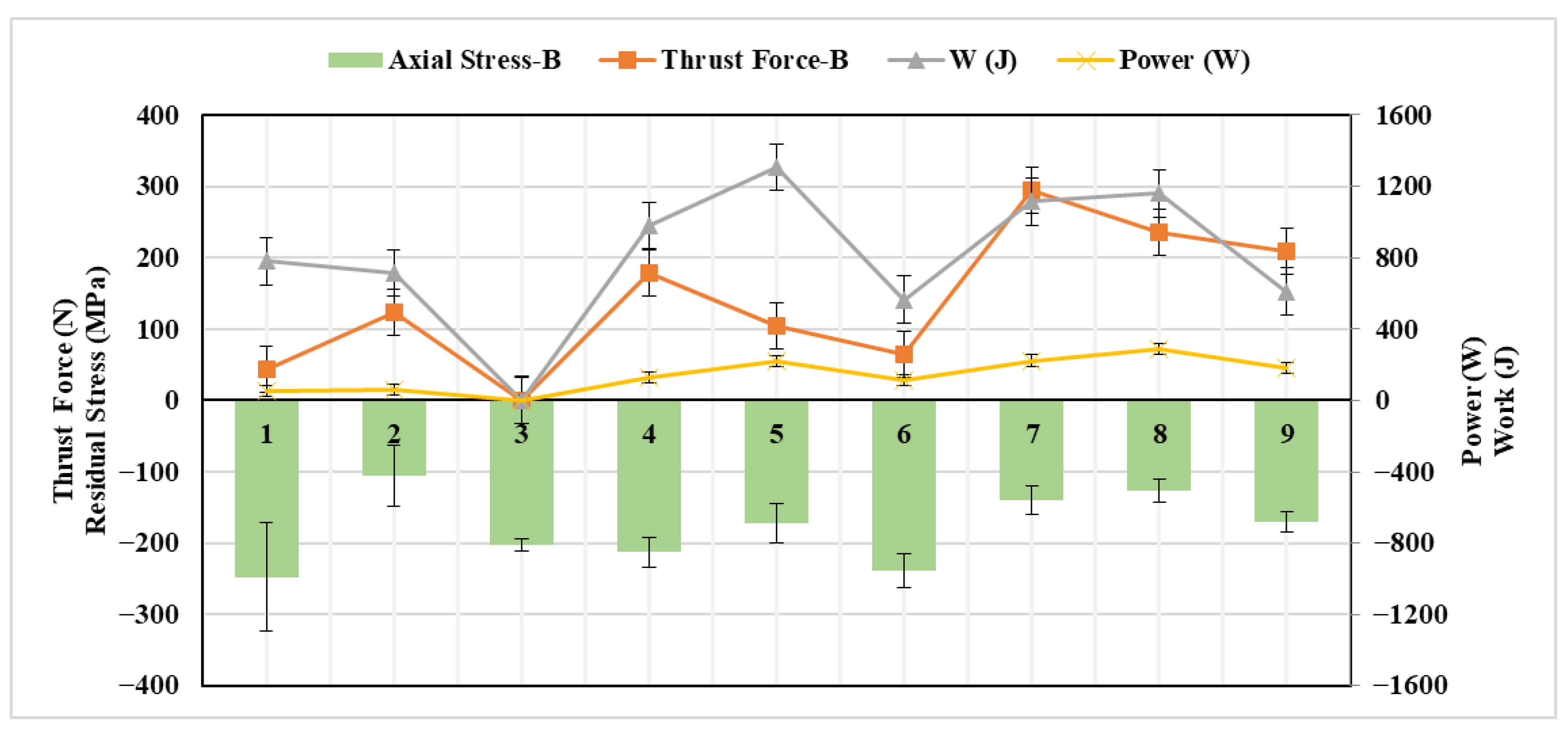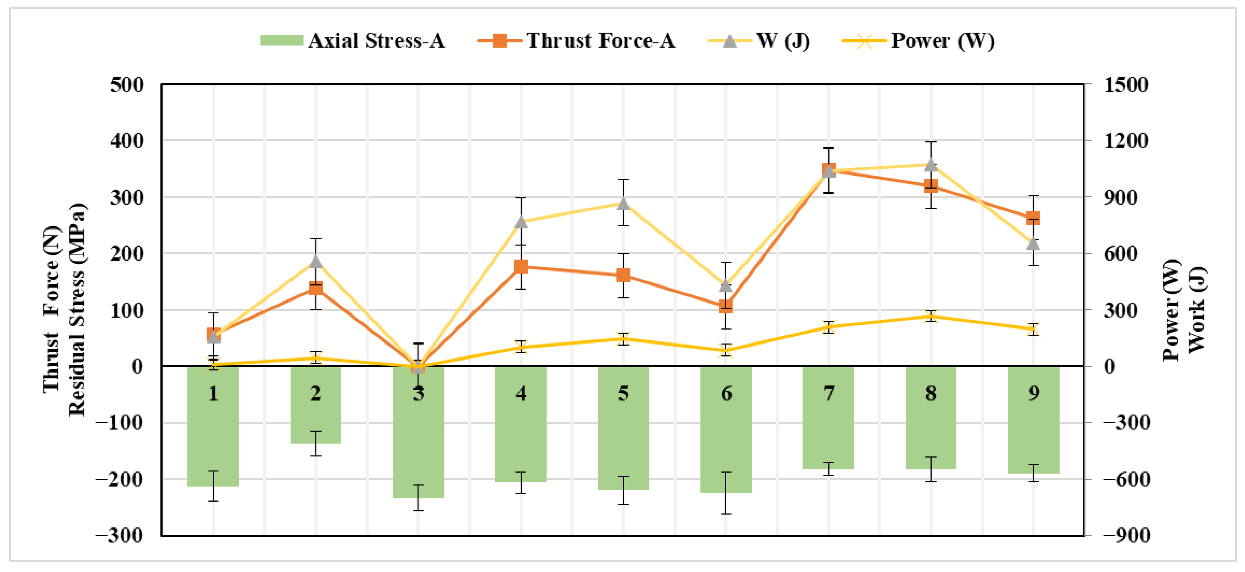 3.3. Effect of Active Work on Residual Stress