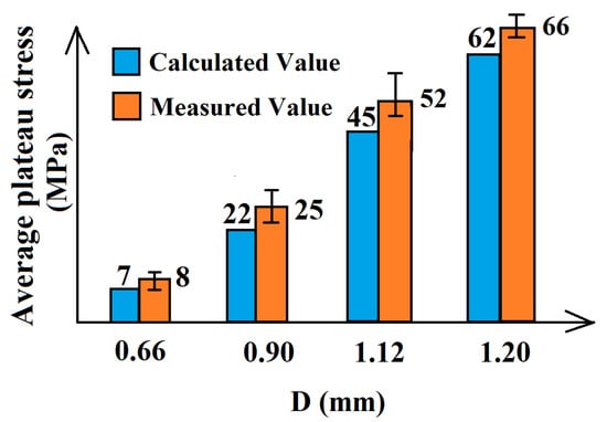 Comparison chart of finite element simulation calculated values and average measured values of plateau stress.