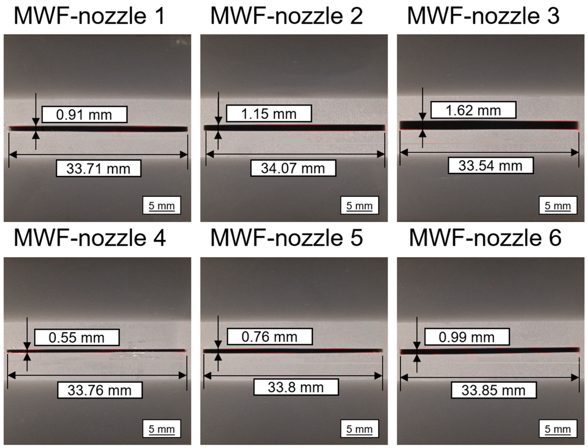 Table 1 summarizes the six MWF-nozzles and their corresponding