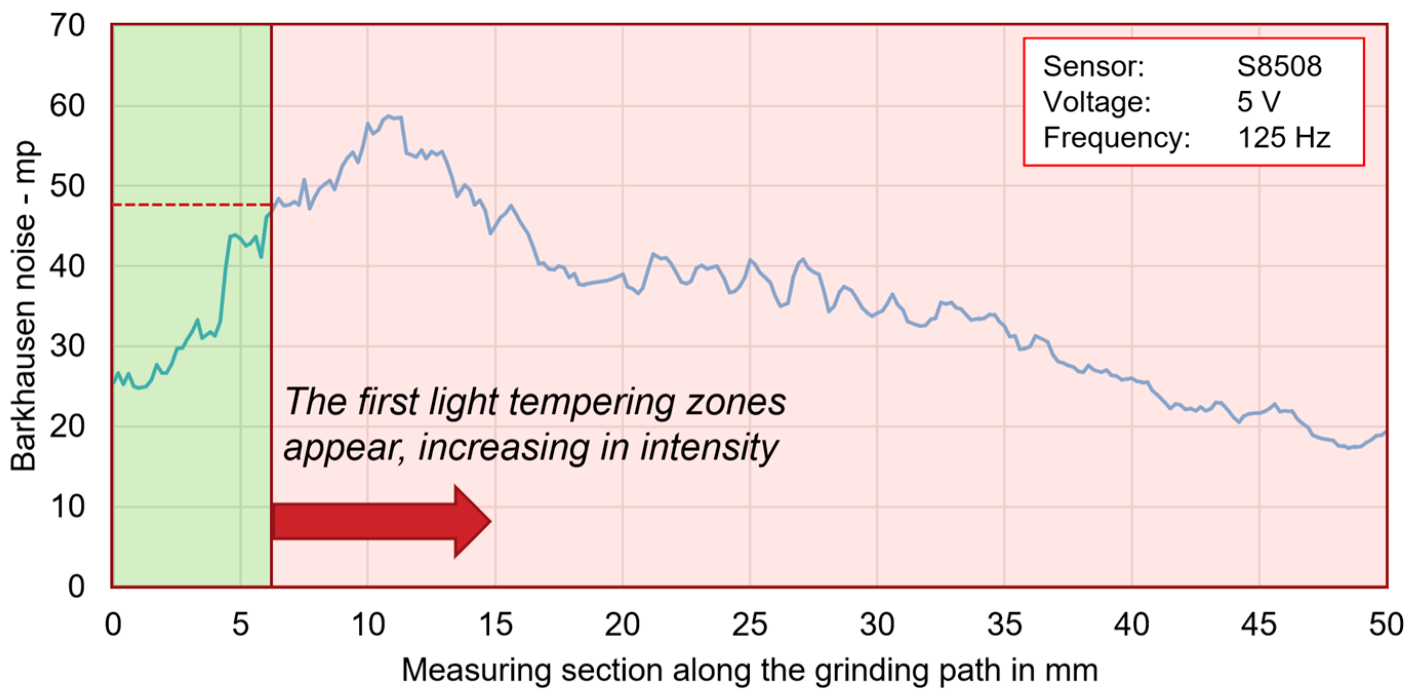 P were measured using a Yokogawa WT500 power analyzer (Yokogawa, Tokyo, Japan). After grinding, the thermal effects associated with grinding burn were evaluated. Barkhausen noise measurements were applied to enable a quantitative and non-destructive assessment of thermally induced surface and near-surface alterations.