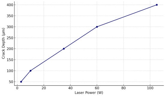 Wu et al. [38] conducted a comprehensive investigation into the stress dynamics and crack evolution mechanisms involved in nanosecond laser slicing of 4H-SiC wafers. The study aimed to enhance slicing efficiency and precision for large-diameter wafers by developing a physics-informed numerical model that simulates free electron generation, energy absorption, stress development, and crack propagation. The model integrates avalanche ionization, thermal diffusion, and stress–strain relationships to analyze how pulse duration, scanning speed, and energy deposition influence modified zone formation and crack extension. The laser slicing process was experimentally validated using a 532 nm, 10 ns nanosecond laser operating at 15 kHz with 117 µJ pulse energy and ~4 µm spot size, focused 250 µm below the surface of 6-inch N-type 4H-SiC wafers (see Table 14). Results revealed that material modification and crack formation were driven by two stages: early avalanche ionization-induced volumetric expansion (dominant at <30 ns) and later thermal stress buildup (dominant at >40 ns). The modified region exhibited a semi-elliptical shape whose width saturated at ~39 µm for pulse durations beyond 70 ns, while the crack propagation length increased nonlinearly, eventually plateauing due to decreasing stress intensity. The study demonstrated an optimal scanning speed of 100 mm/s, achieving full 6-inch wafer slicing in approximately 18 min, with scalability to 12-inch wafers in 70 min. The findings offer a validated model for predictive control over crack behavior and establish a practical framework for efficient, low-damage slicing of SiC wafers using nanosecond laser pulses.