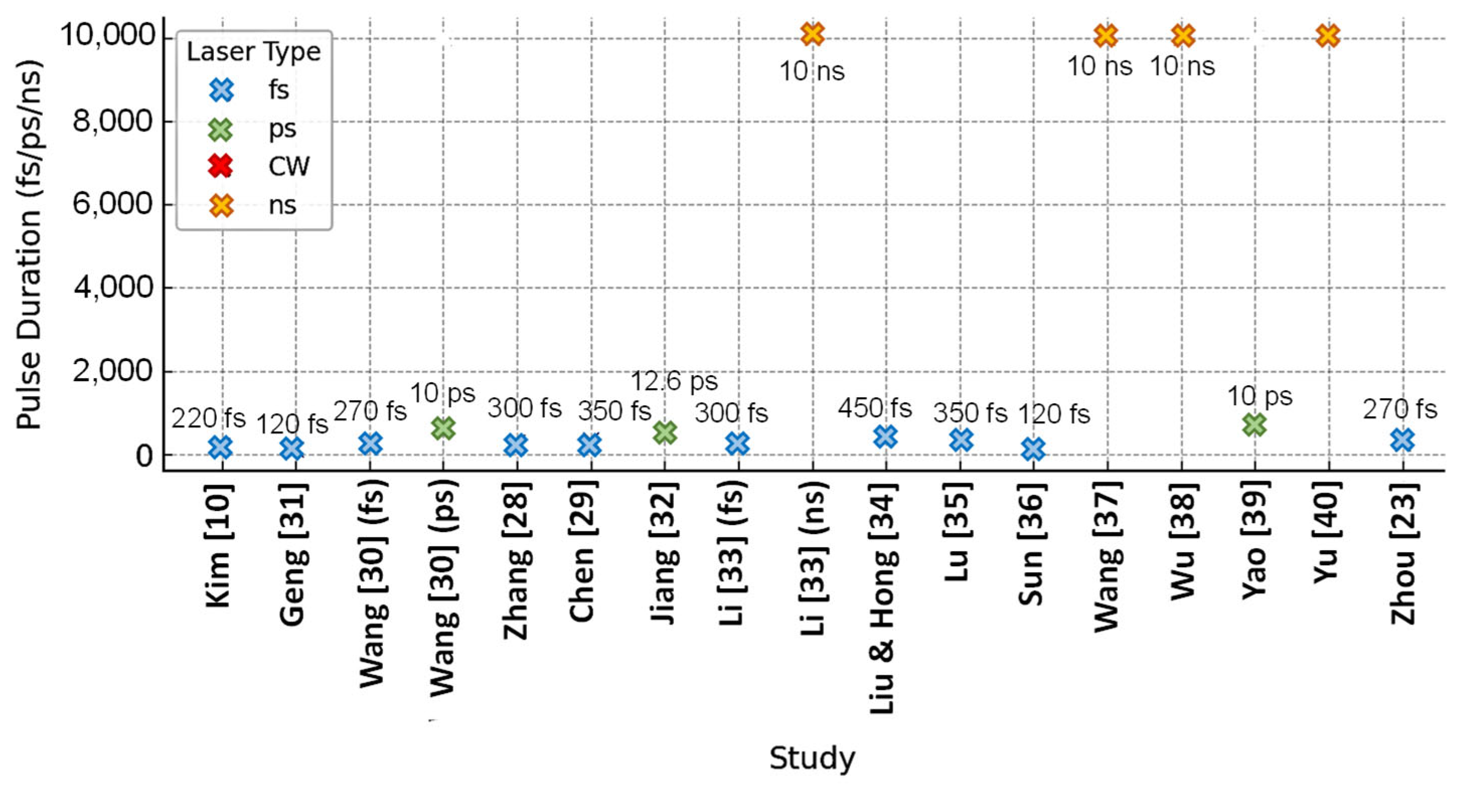 Figure 12). Femtosecond (fs) lasers are the most widely used for ultra-precise slicing applications, as their ultrashort pulses enable localized energy deposition with minimal thermal diffusion. In contrast, picosecond (ps) and nanosecond (ns) lasers are typically employed in scenarios where deeper material modification is required or where higher pulse energies are necessary to initiate structural changes.