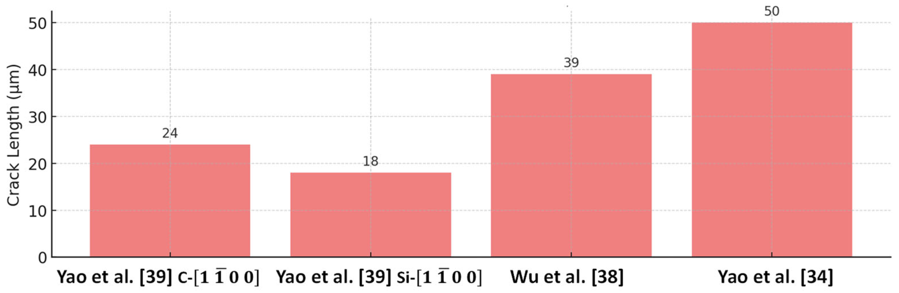 crystal orientation under picosecond laser irradiation achieved the longest and most controlled crack propagation (~24 µm), surpassing other configurations such as Si-