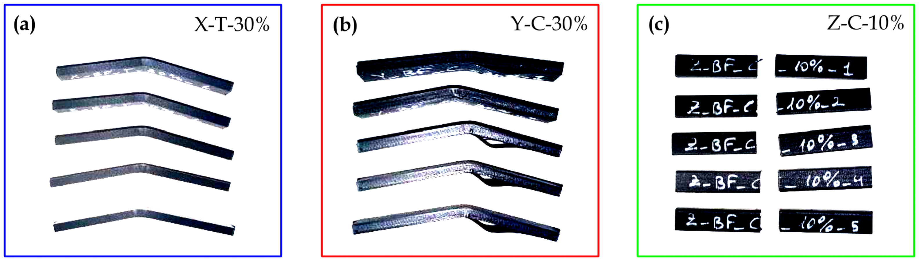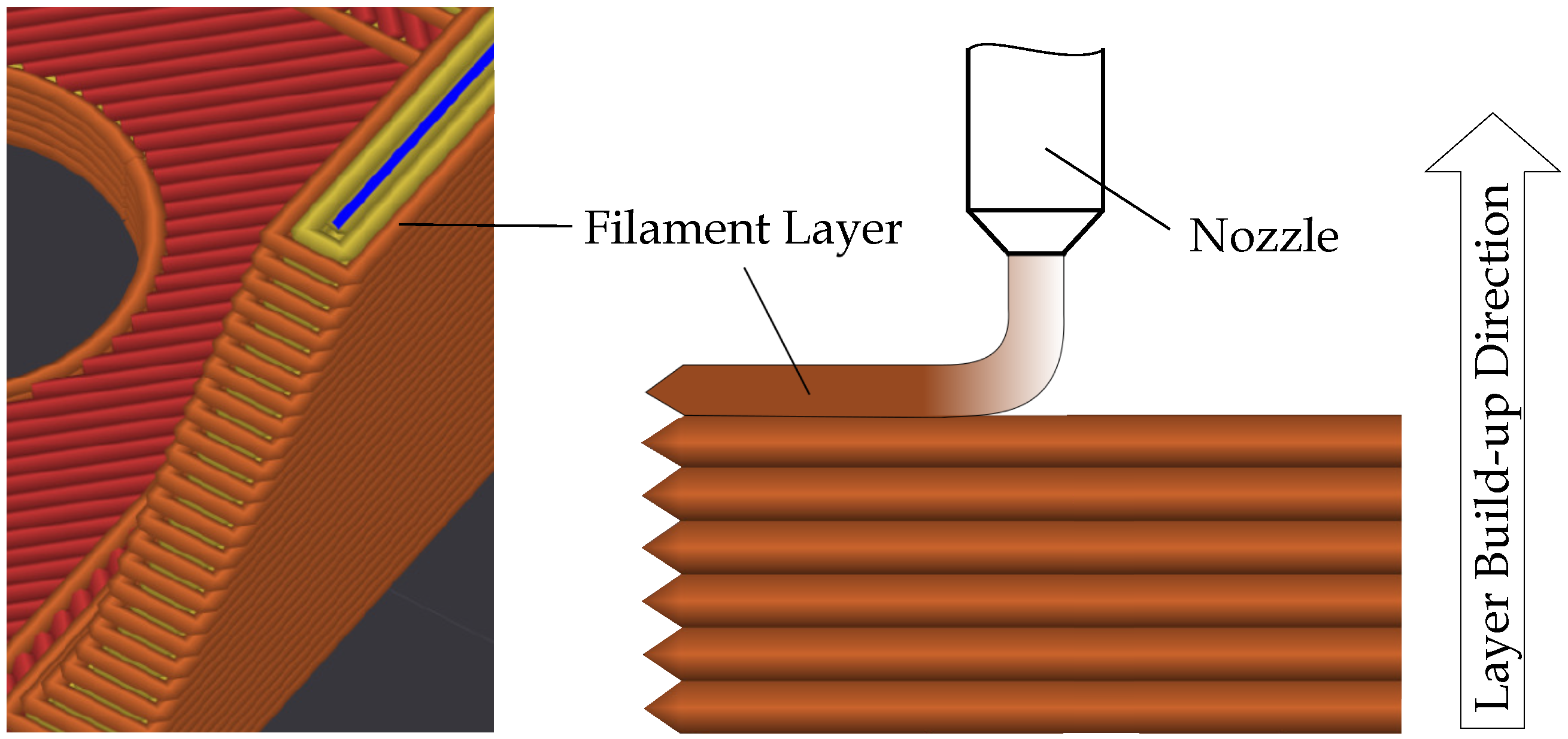 - Böhm, M.; Buss, C. Experimental Investigation into the Influence of Filament Layer Arrangement on the Tensile Strength of FFF-Manufactured Components. J. Manuf. Mater. Process. 2024, 8, 295. [Google Scholar] [CrossRef]