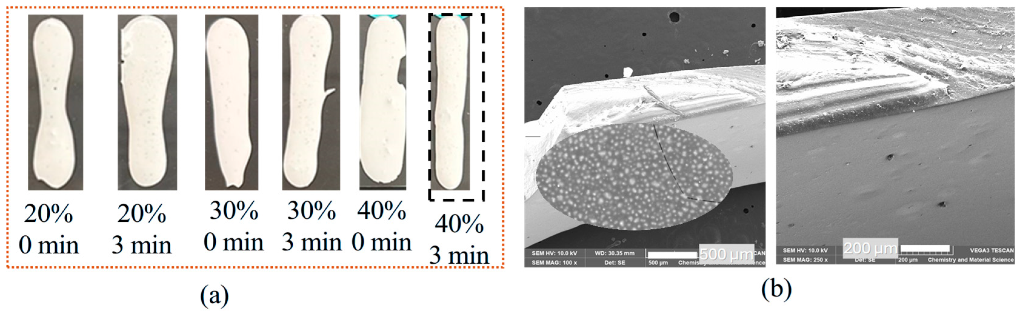 Characterization of pdms-batio3 composite and tactile sensing performance. This figure illustrates (a) fabricated PDMS-BaTiO3 composite samples with various percentages of PDMS and changes over time. (b) SEM images highlighting the uniform distribution of BaTiO3 particles within the PDMS matrix. The inset shows how Backscattered electron detection method shows the particles under the surface of the sample.