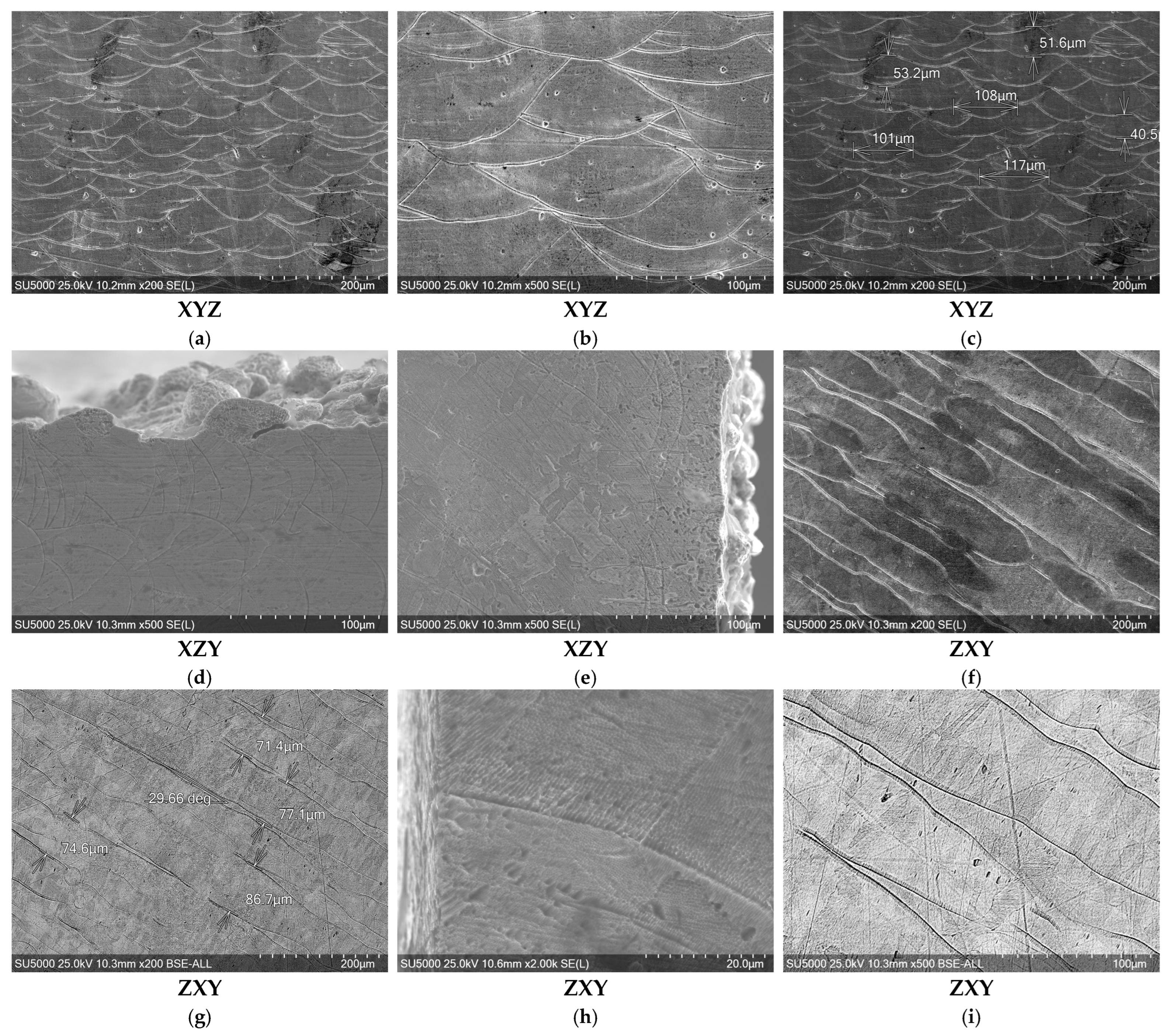 - Kok, Y.; Tan, X.P.; Wang, P.; Nai, M.L.S.; Loh, N.H.; Liu, E.; Tor, S.B. Anisotropy and Heterogeneity of Microstructure and Mechanical Properties in Metal Additive Manufacturing: A Critical Review. Mater. Des. 2018, 139, 565–586. [Google Scholar] [CrossRef]