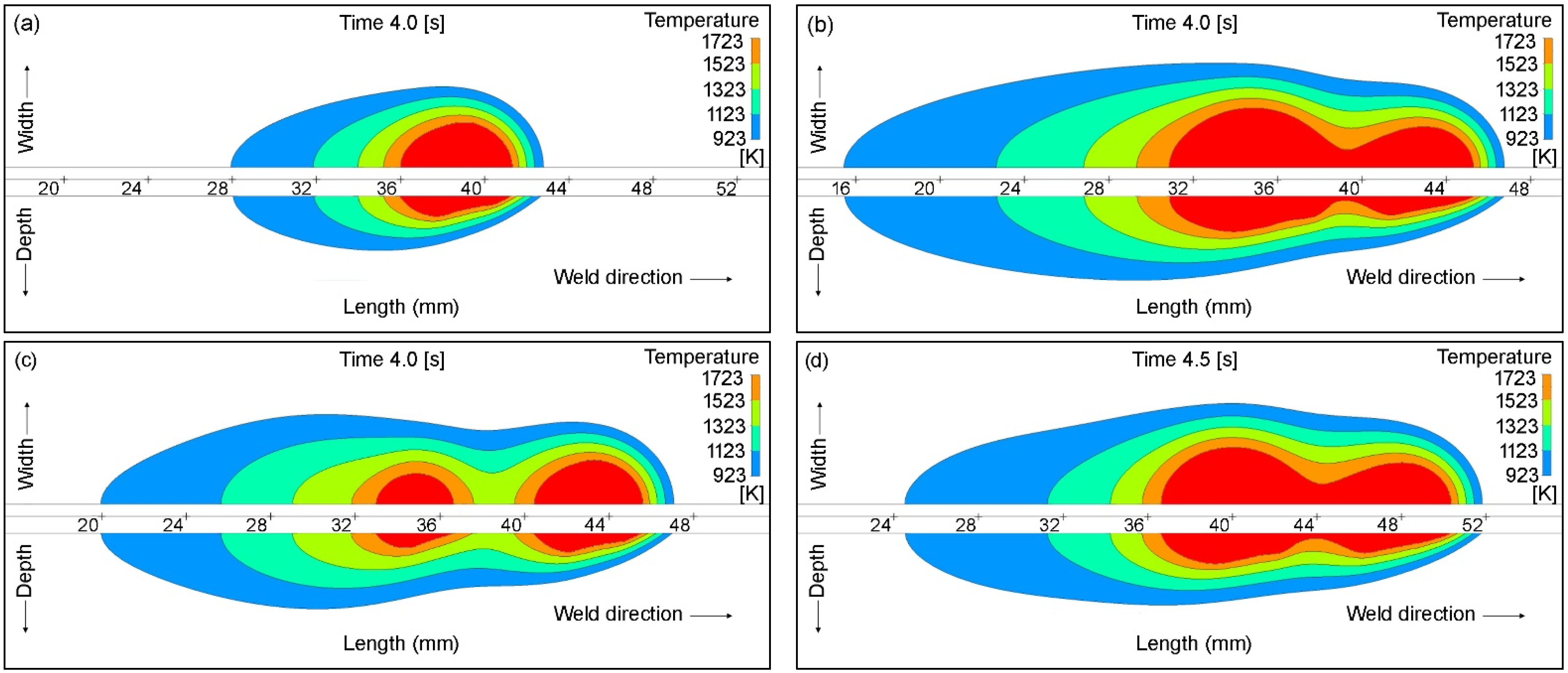 | 7 | Weld pool with double-electrode DC | 50 mm | Transient, 5 s |